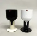 2 vinglas, Kaveri, Jorma Vennola, Iittala, höjd 13,5cm, löstagbar fot i plast, Ø7,5cm, svart- och vitt glas, 1980-1987, etikettmärkta