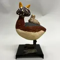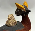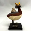 Skulptur, Dopping med unge, stengods på metallplatta, höjd 28cm, bredd ca 17cm, Martin Hansson f 1958, Götene, monogramsignerad, etikettmärkt Skickas med postpaket.