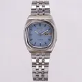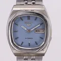 Herrur Seiko 5, ca 36mm, stål, automatisk, ref: 7019-5140, srn: 845709, ljusblå urtavla, dag, datum, stållänk ca 19cm, lysmassa saknas delvis på visare, smärre rost i urverket, inga tillbehör.