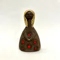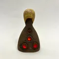 Figurin, kvinna i prickig klänning, höjd 14cm, osignerad, delvis glaserad