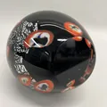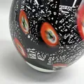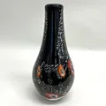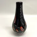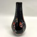 Vas, höjd 32cm, droppformad, osignerad, möjligen Alfredo Barbini, Murano, Italien, svart glasmassa med dekor av millefiori i svart och rött samt silverfoliering Skickas med postpaket.