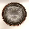 Skålfat, Ø38cm, höjd 8cm, Carl-Harry Stålhane (1920-1990), Rörstrand, brun/röd/grå glasyr med ränder, märkt Ateljé Rörstrand, CHS, Sweden, stengods Skickas med postpaket.