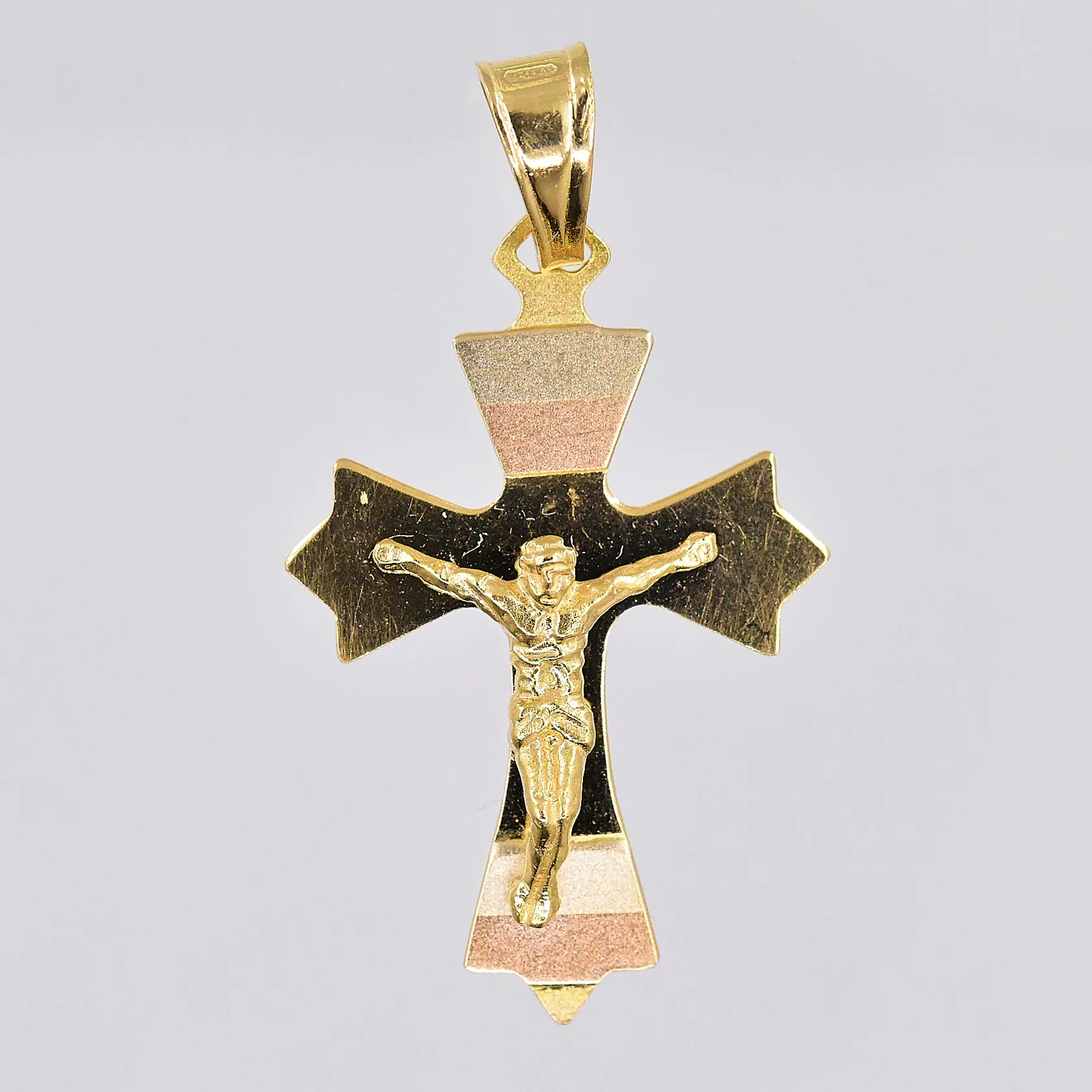 Hänge, krucifix, stl 35x19mm, rödguldsdetaljer, 18K Vikt: 2,9 g.
