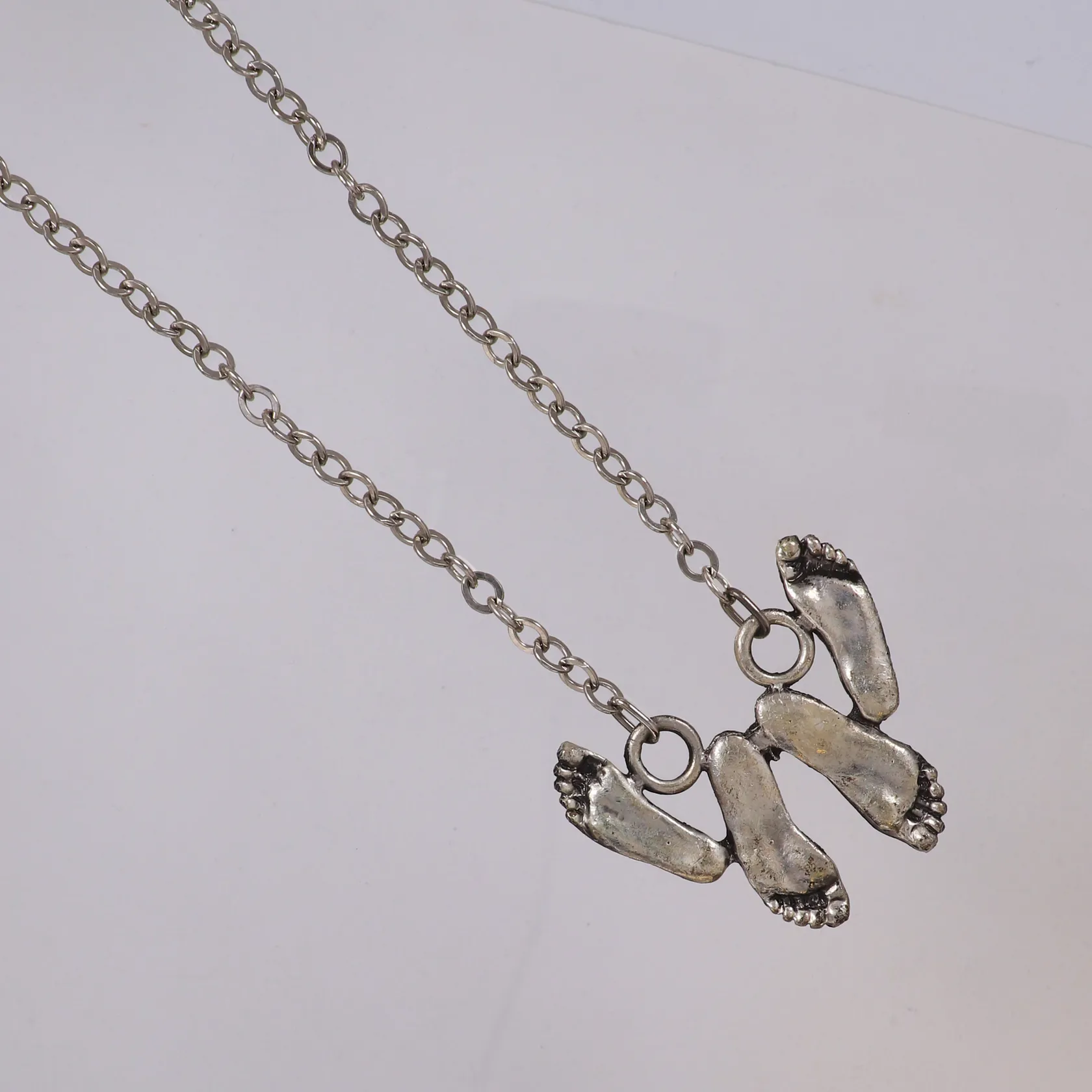 Collier, integrerat hänge med fötter, längd ca 75cm, bredd 6mm, hängets mått ca 55x62mm, vitmetall