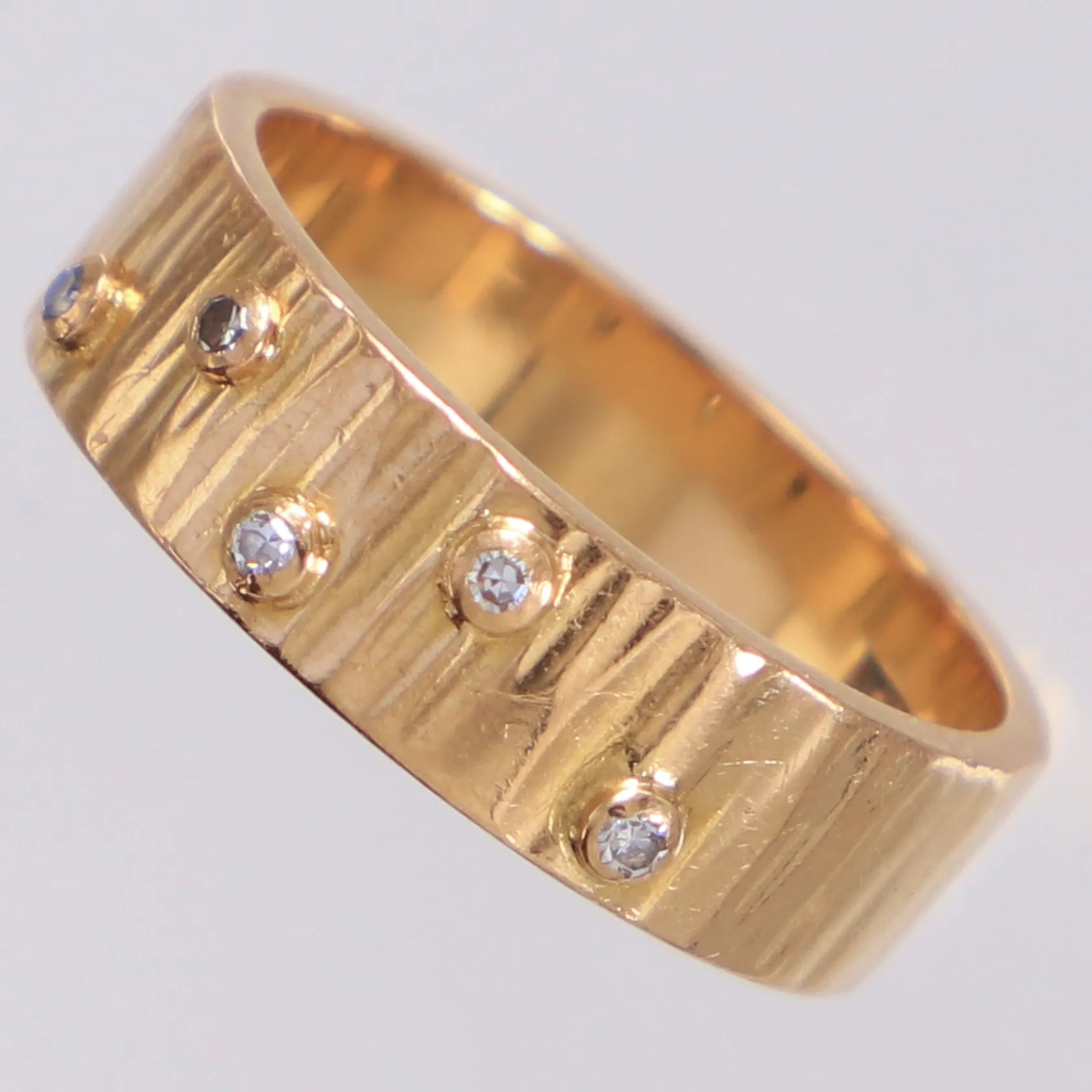 Ring med åttkantslipade diamanter ca 0,05ctv, stl 16¼, bredd 5,3mm, Ceson Göteborg, år 1985, 18K Vikt: 4,6 g.