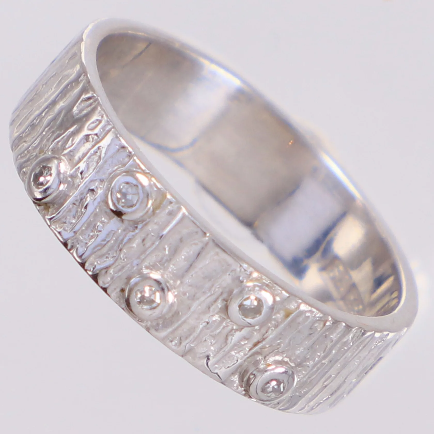Ring med åttkantslipade diamanter ca 0,03ctv, stl 16¾, bredd 5,3mm, Ceson, Göteborg år 1971, vitguld, 18K Vikt: 4,8 g.