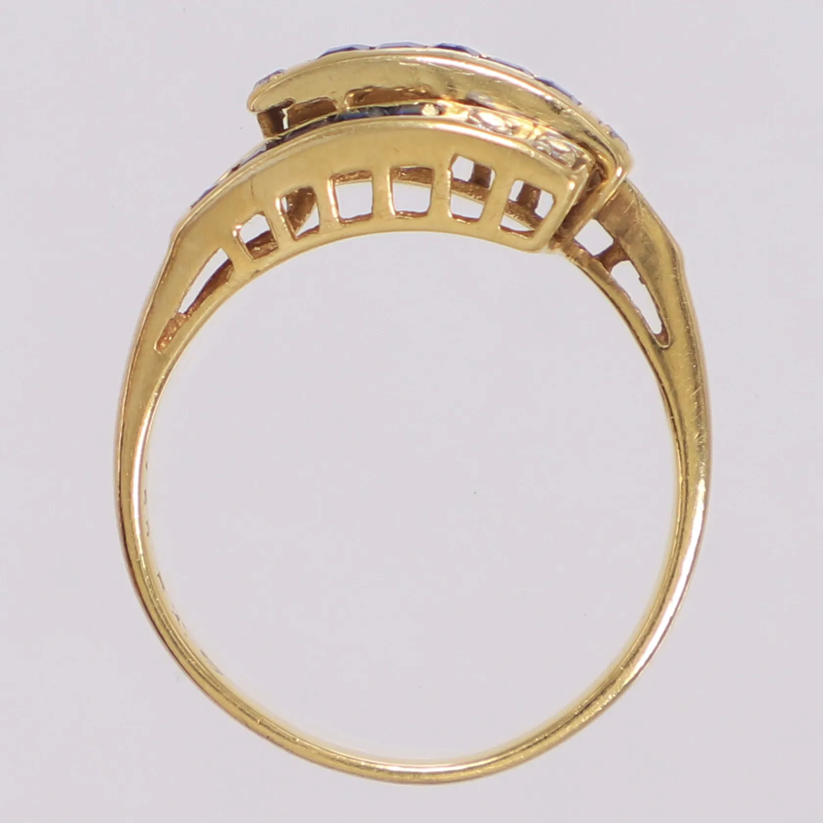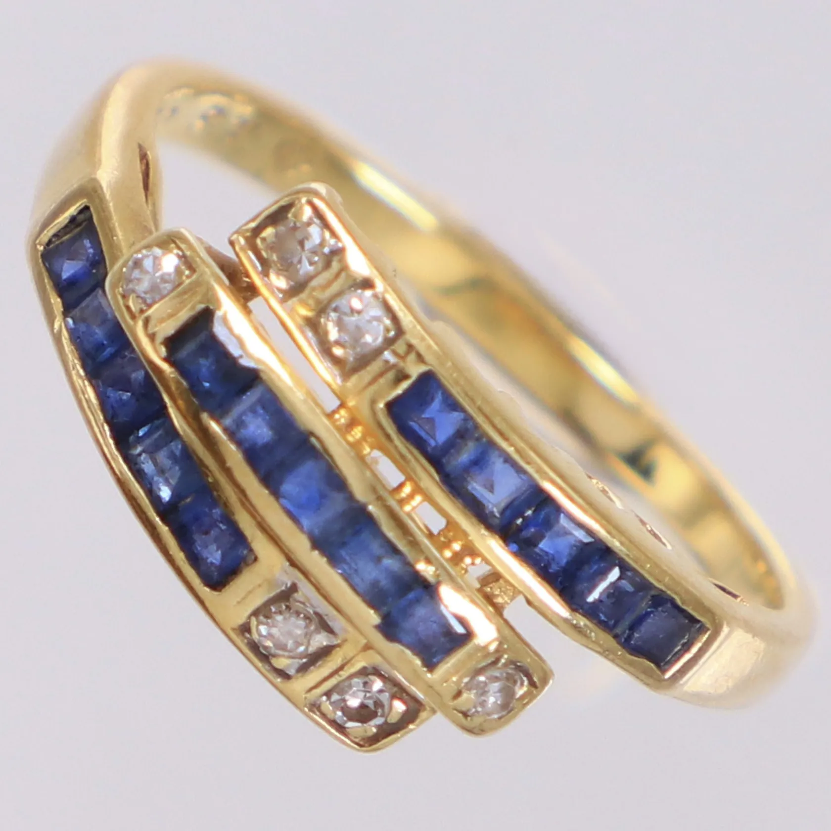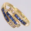 Ring med blå safirer samt åttkantslipade diamanter 6 x 0,01ct, mindre slitage på fasettkanter stl: 17, Rosin Ädelform, 18K Vikt: 3 g.