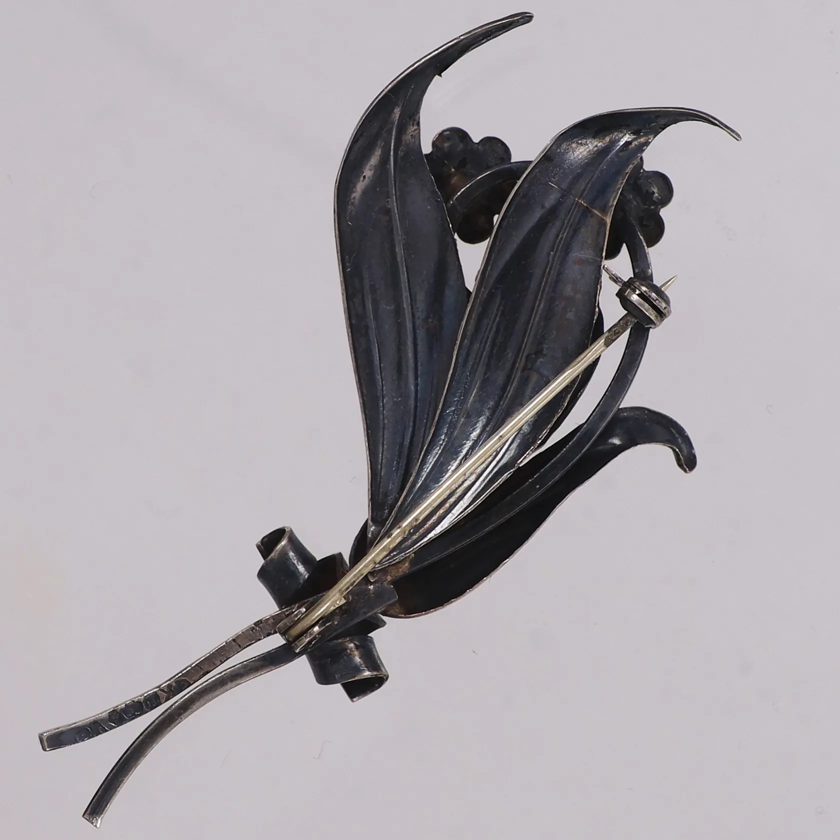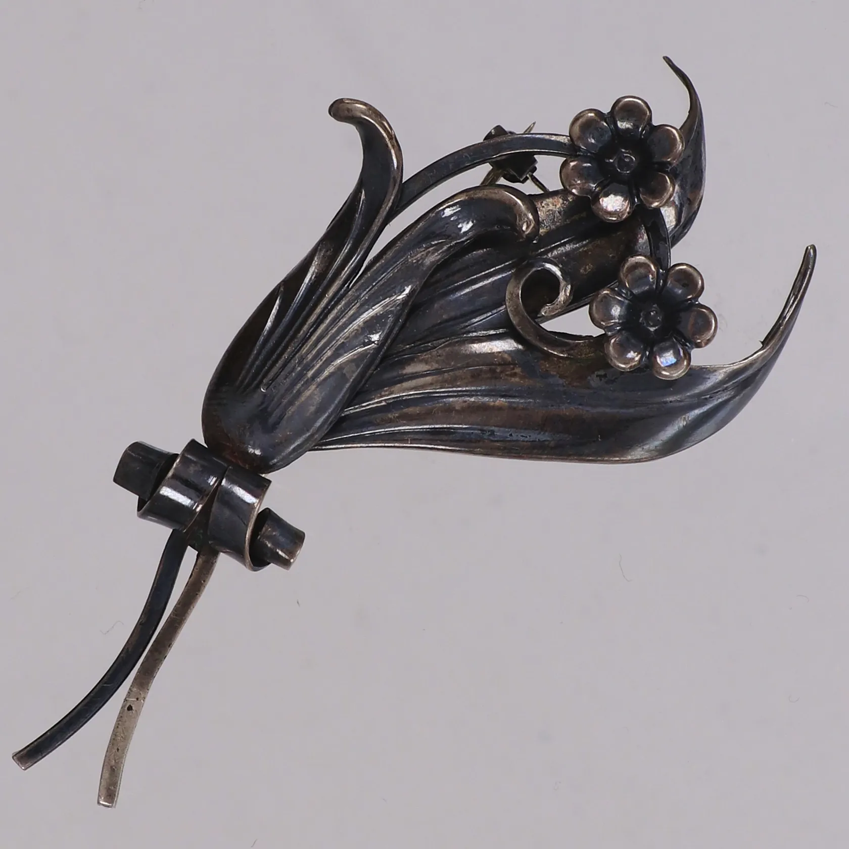 Brosch med floral dekor, längd 69,5mm, bredd 37,5mm, silver 830/1000 Vikt: 9,2 g.