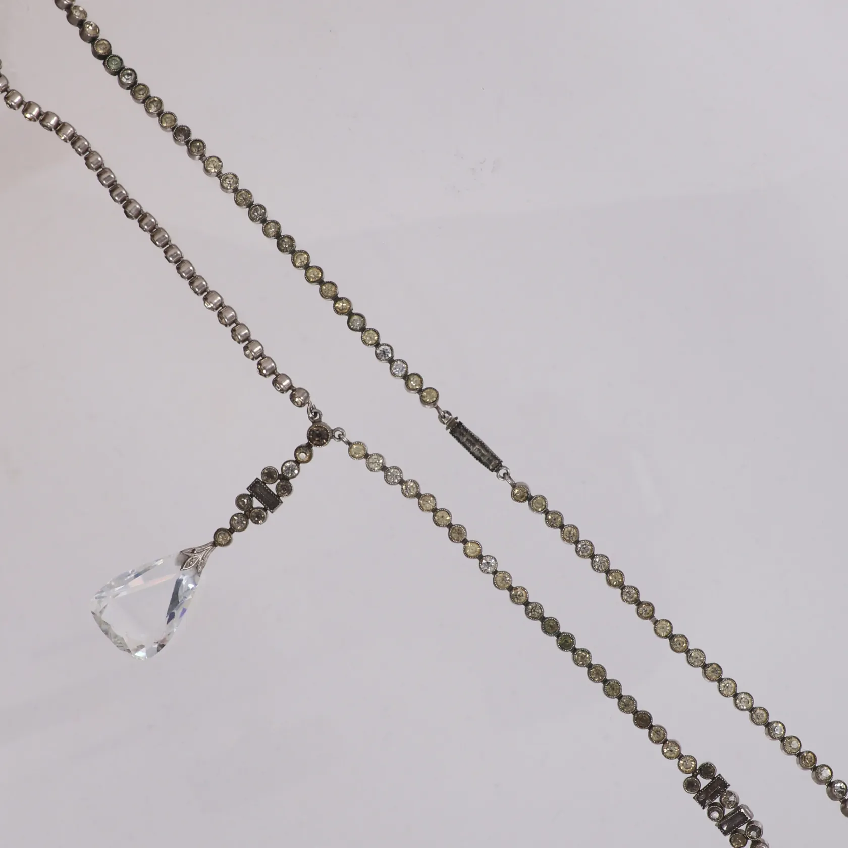 Collier med vita stenar, nagg på hänge, längd 46cm, vitmetall