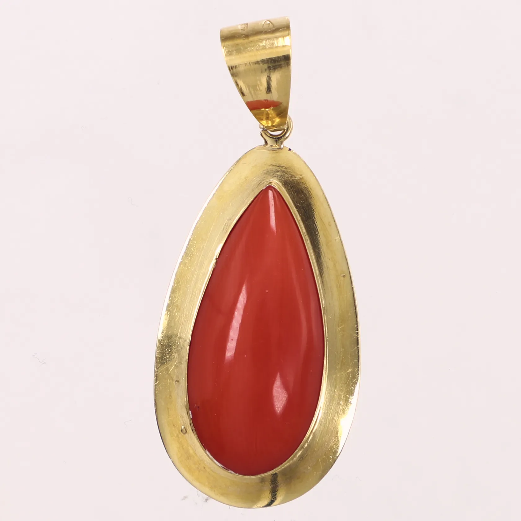 Hänge med korall, längd 45,5mm, bredd 18,5mm, 18K Vikt: 6 g.