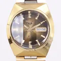 Herrur Seiko 5 DX, Automatic, ref 6106-7720, Ø37,6mm, dag/datum, ser.nr 480744, sunburst urtavla, slipat glas med repor, nagg, fungerar, gulmetall, originallänk i stål, repor, slitage