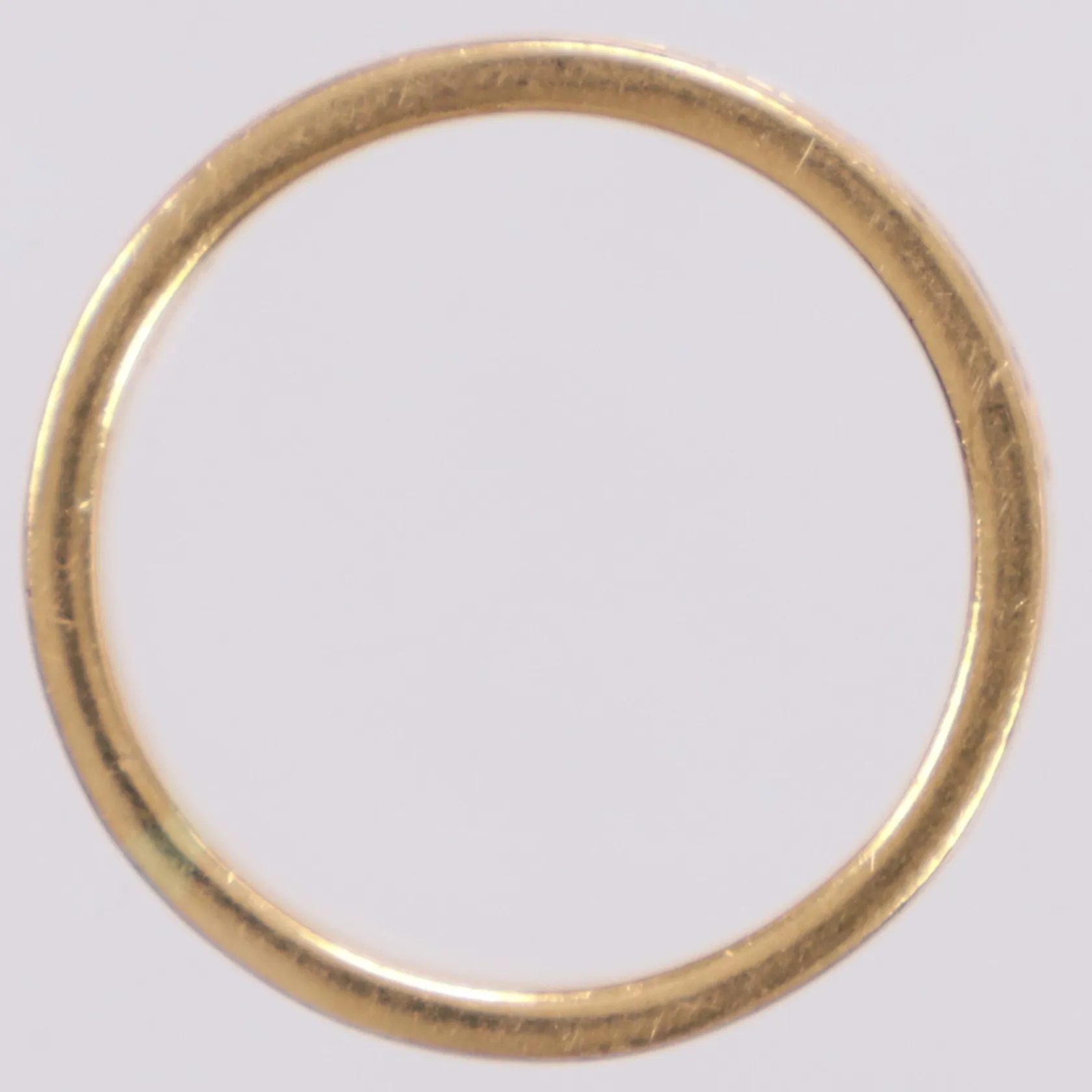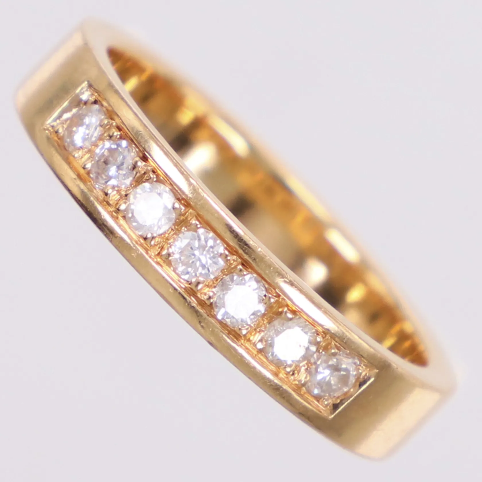 Alliansring med briljantslipade diamanter ca 0,28ctv, nagg, W(H)/SI-PI, stl 20, bredd 4mm, repor, 18K Vikt: 6,1 g.