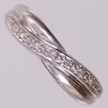 Ring med diamanter 7xca0,005ct, 8/8 slipning, stl 17, bredd 2,1-5,1mm, vitguld, 18K Vikt: 2,4 g.
