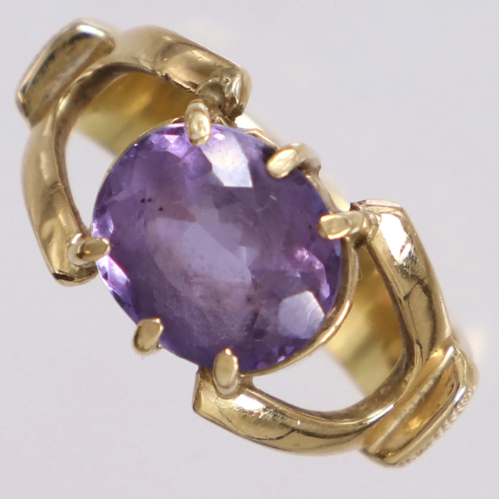 Ring med lila sten, stl 17¾, bredd 11,5mm, 18K Vikt: 7,5 g.