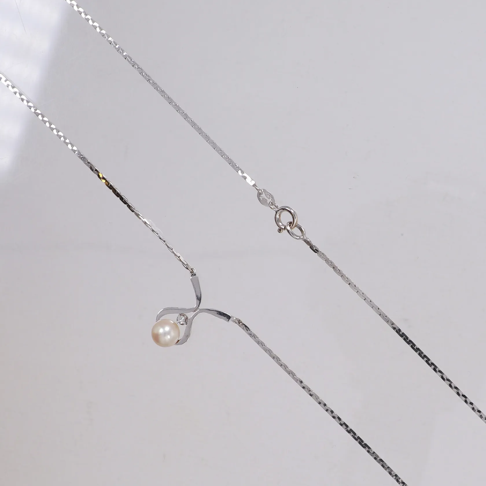 Collier med åttkantslipad diamant ca 0,02ct, odlad saltvattenspärla, längd 42cm, importstämpel, vitguld, 18K Vikt: 5,8 g.