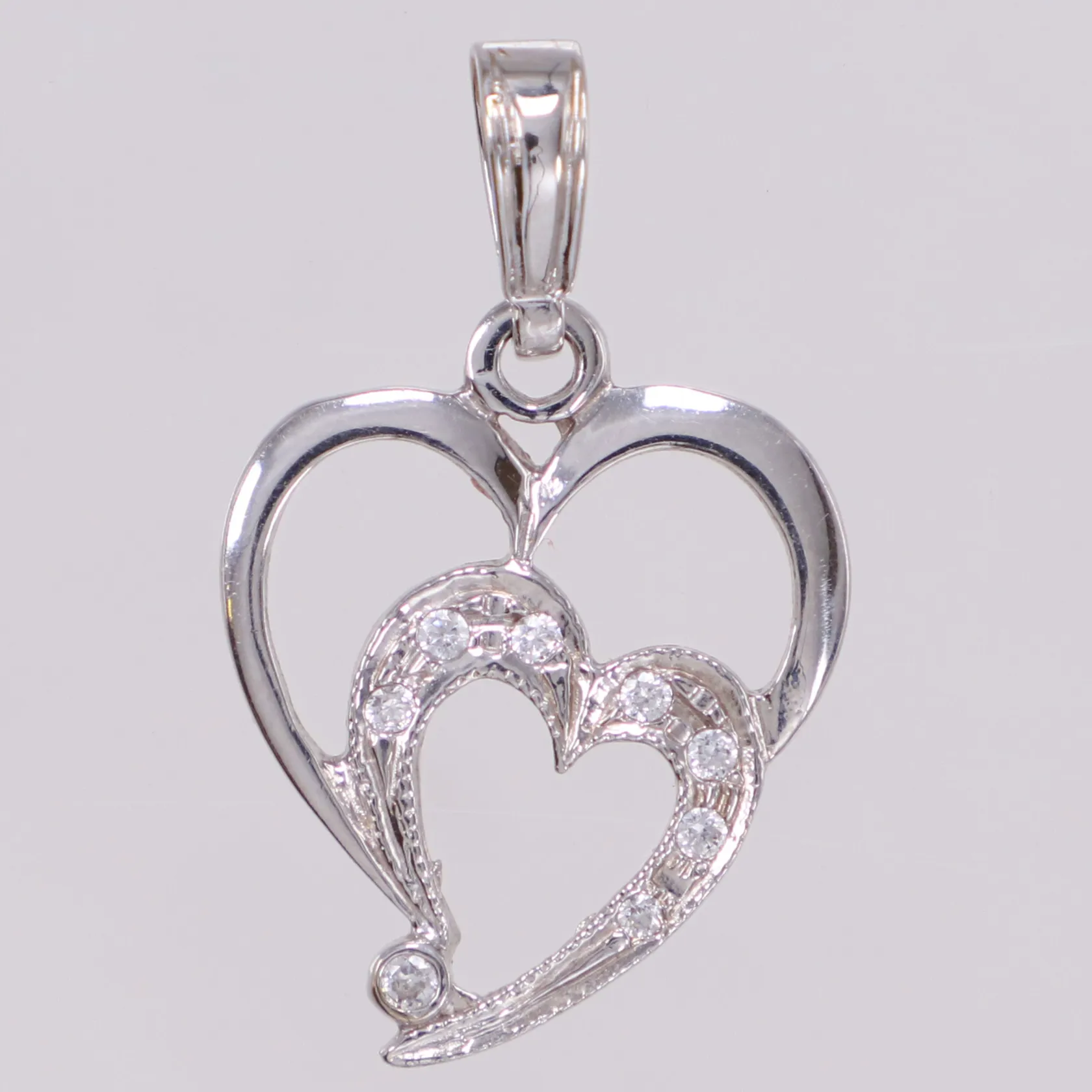 Hänge, hjärta, med vita stenar, längd 27mm, vitguld 14K Vikt: 2 g.