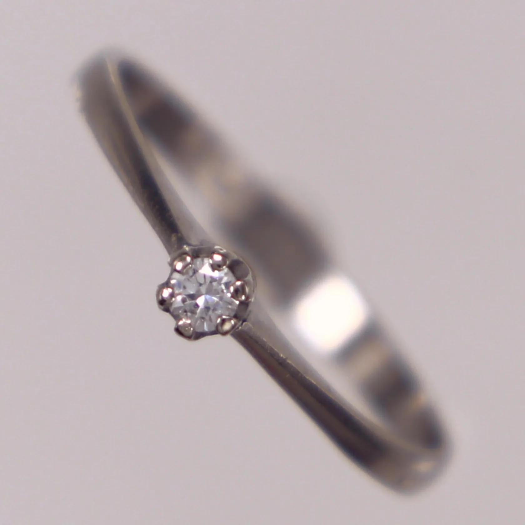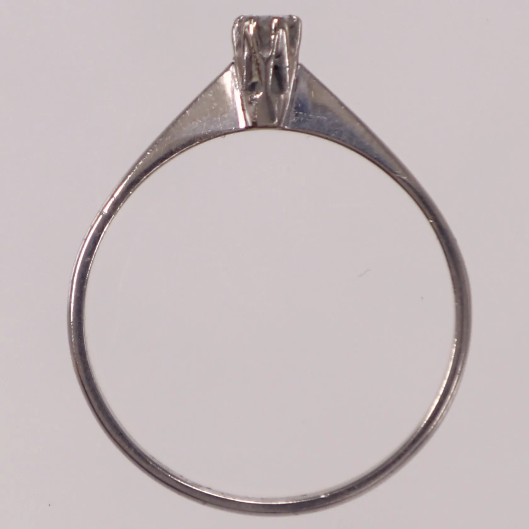 Ring med diamant 1xca0,06ct, stl 17¾, bredd 1,4-3,2mm, vitguld, 18K Vikt: 1,8 g.