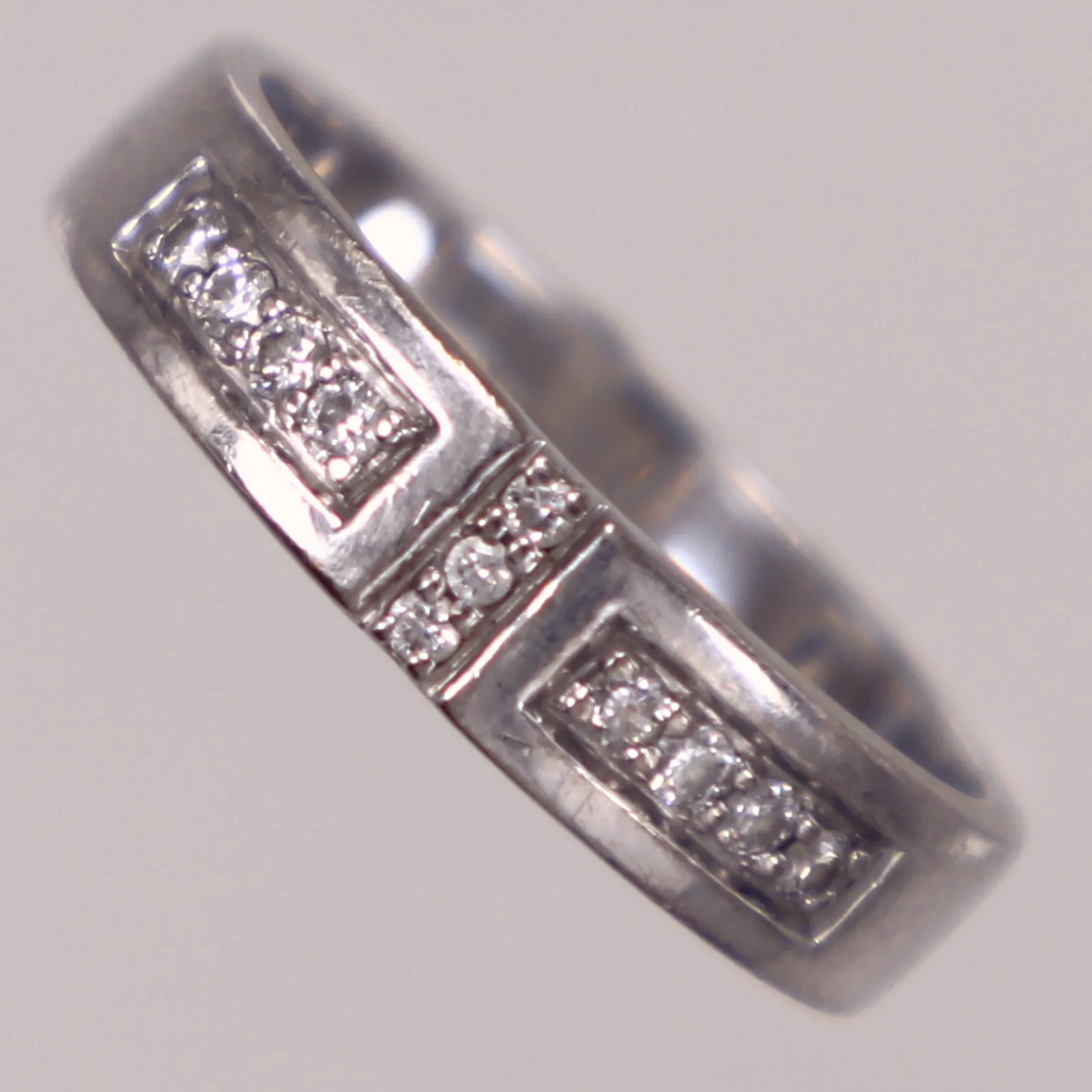 Ring med diamanter 8xca0,015ct, 3xca0,01ct, stl 17¾, bredd 4,3-4,7mm, GHA, vitguld, 18K Vikt: 4,5 g.