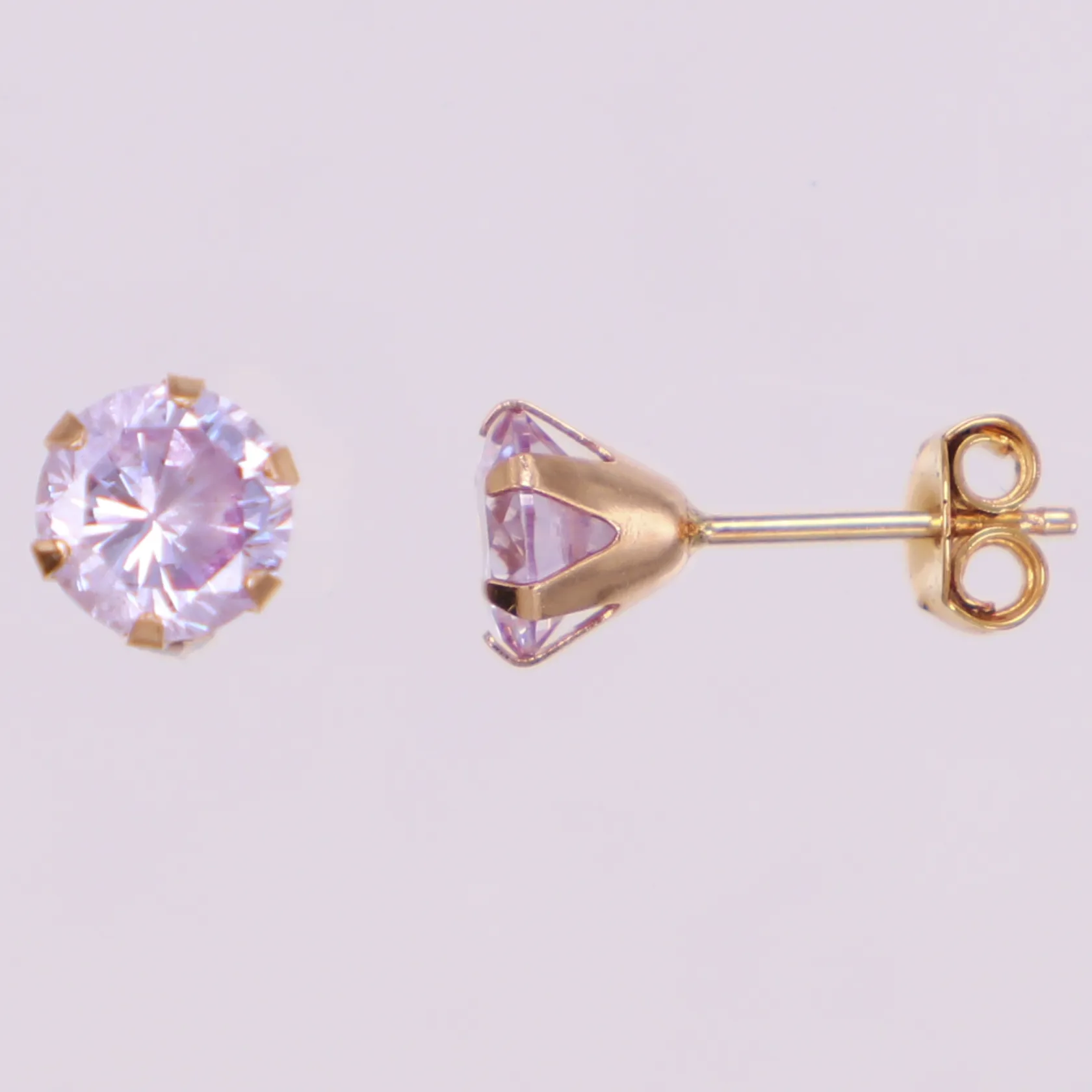Ett par örhängen med ljuslila stenar, Ø6mm, en snurrebuss ej guld, 18K Vikt: 1,1 g.