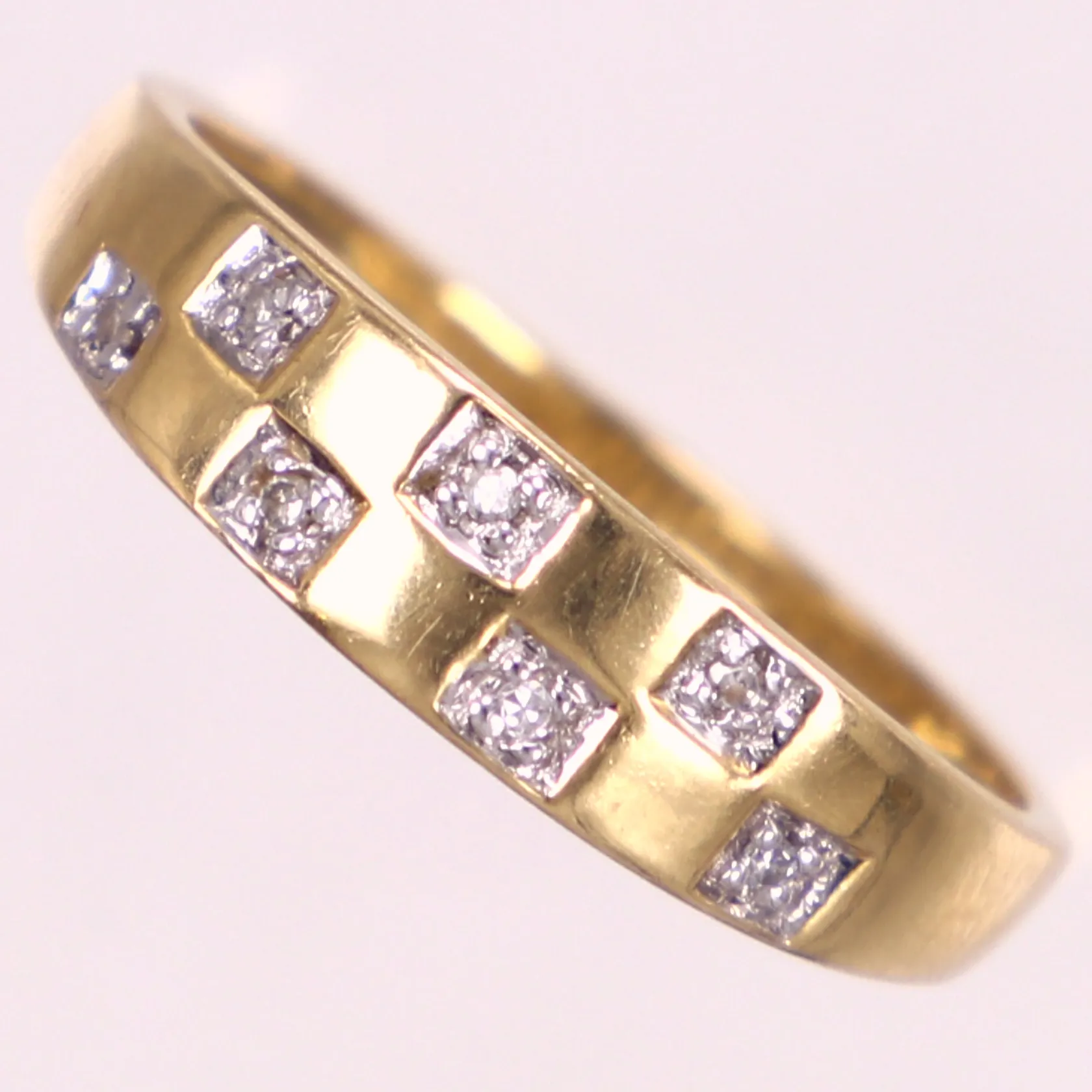 Ring med åttkantslipade diamanter ca 0,035ctv, stl 17, bredd 1,7-4,5mm, 18K Vikt: 2,1 g.