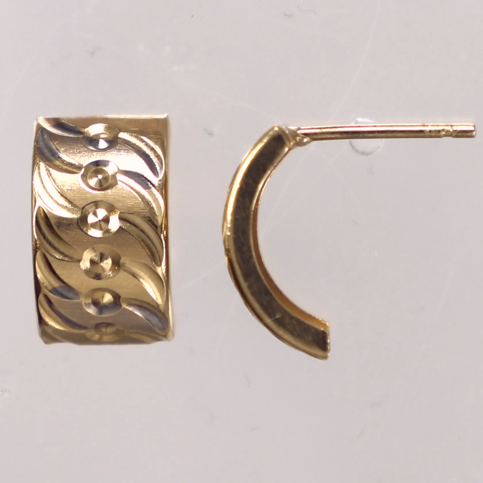 Ett par örhängen, mönstrade, längd 14mm, bredd 7mm, stoppers i plast, 14K Vikt: 1,7 g.