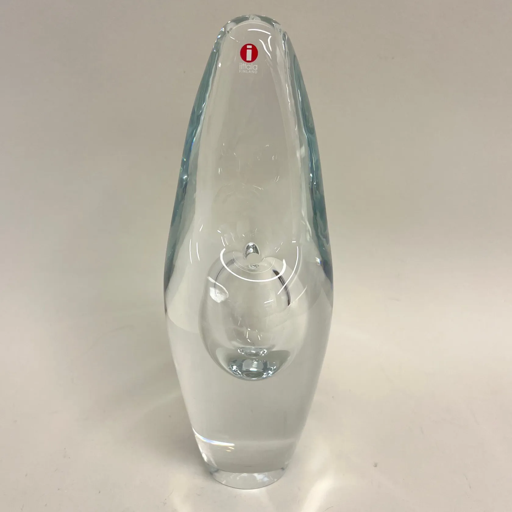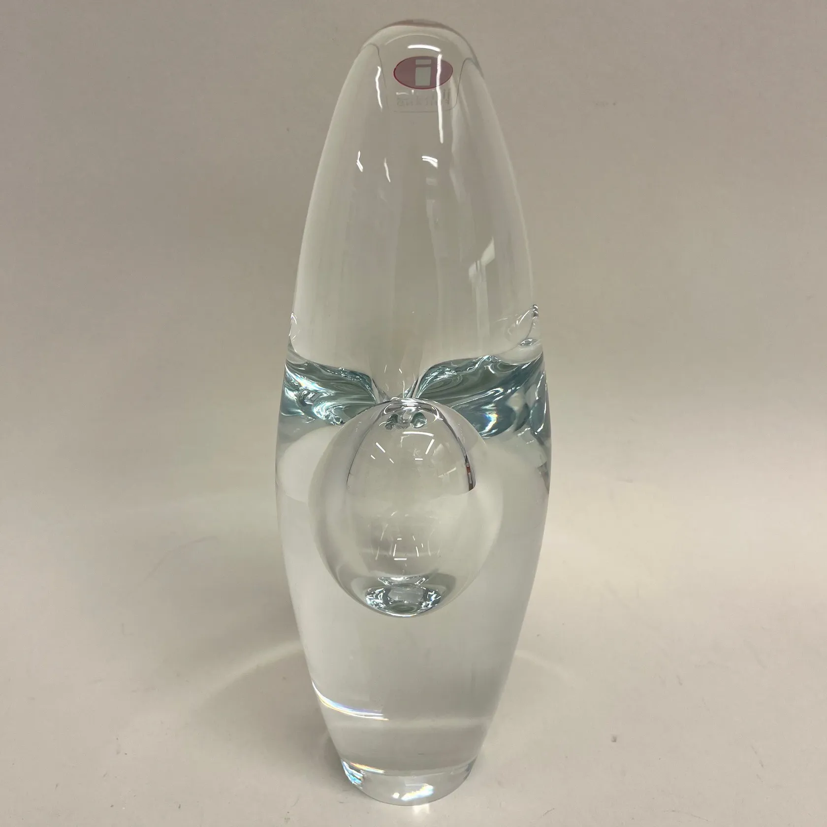 Skulptur/vas, Orkidé, Timo Sarpaneeva (1926-2006), klarglas, Iittala Finland, höjd 23,5cm, signerad och numrerad 9/1996, designad år 1954, etikettmärkt Skickas med postpaket.