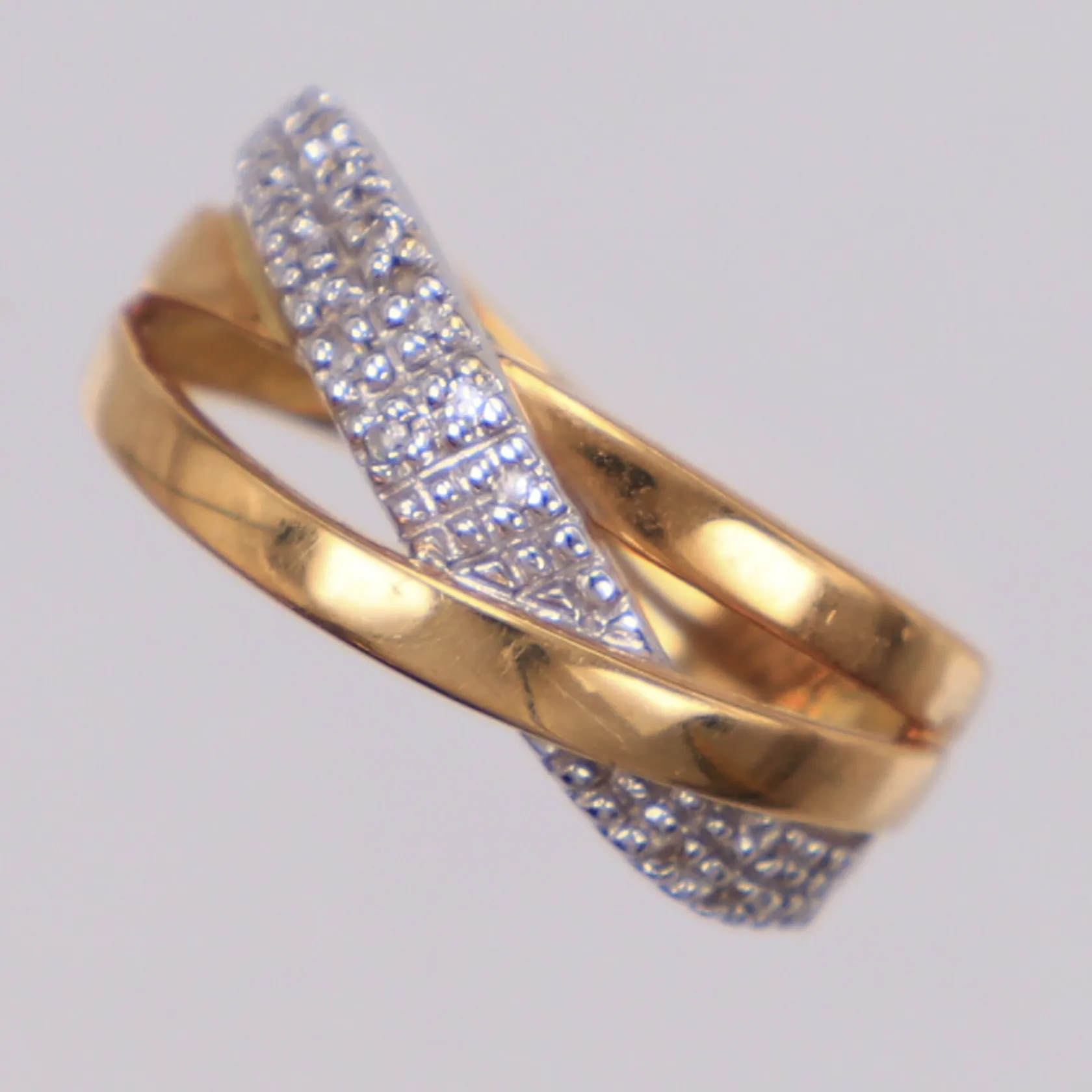 Ring med diamanter 20xca0,005ct åttkantslipade, stl 16¾, bredd 3-8mm, 18K Vikt: 3,5 g.