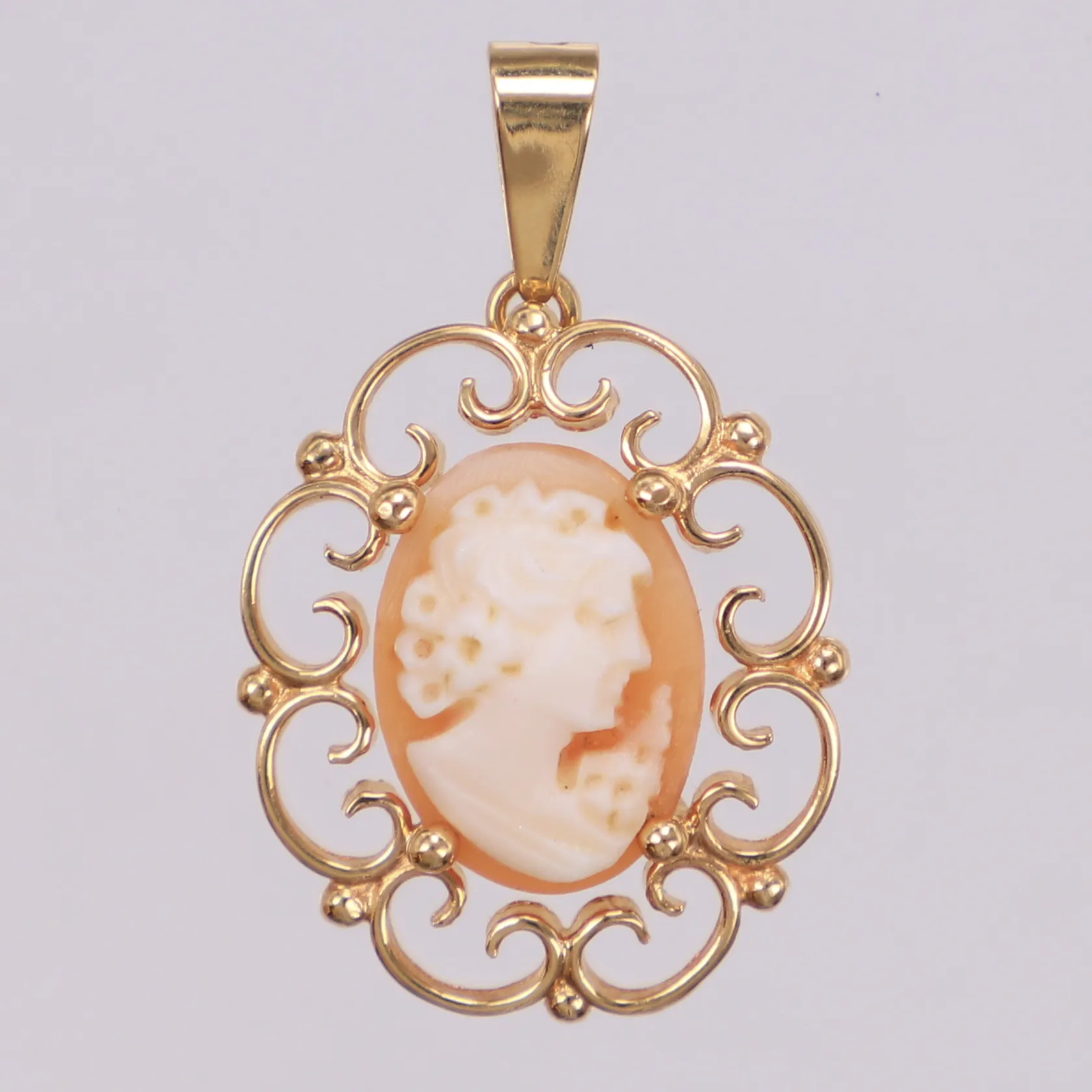 Hänge med camé, längd 30mm, bredd 18,5mm, BEH Bengt Hallberg Guldsmeds AB, något böjd, 18K Vikt: 3,1 g.