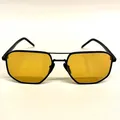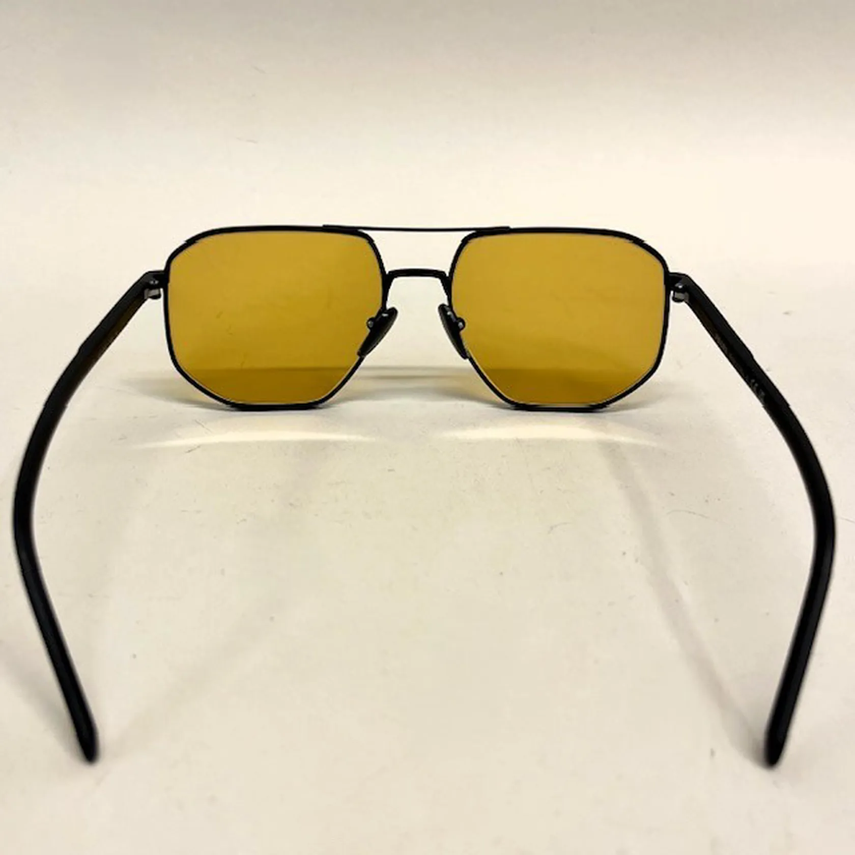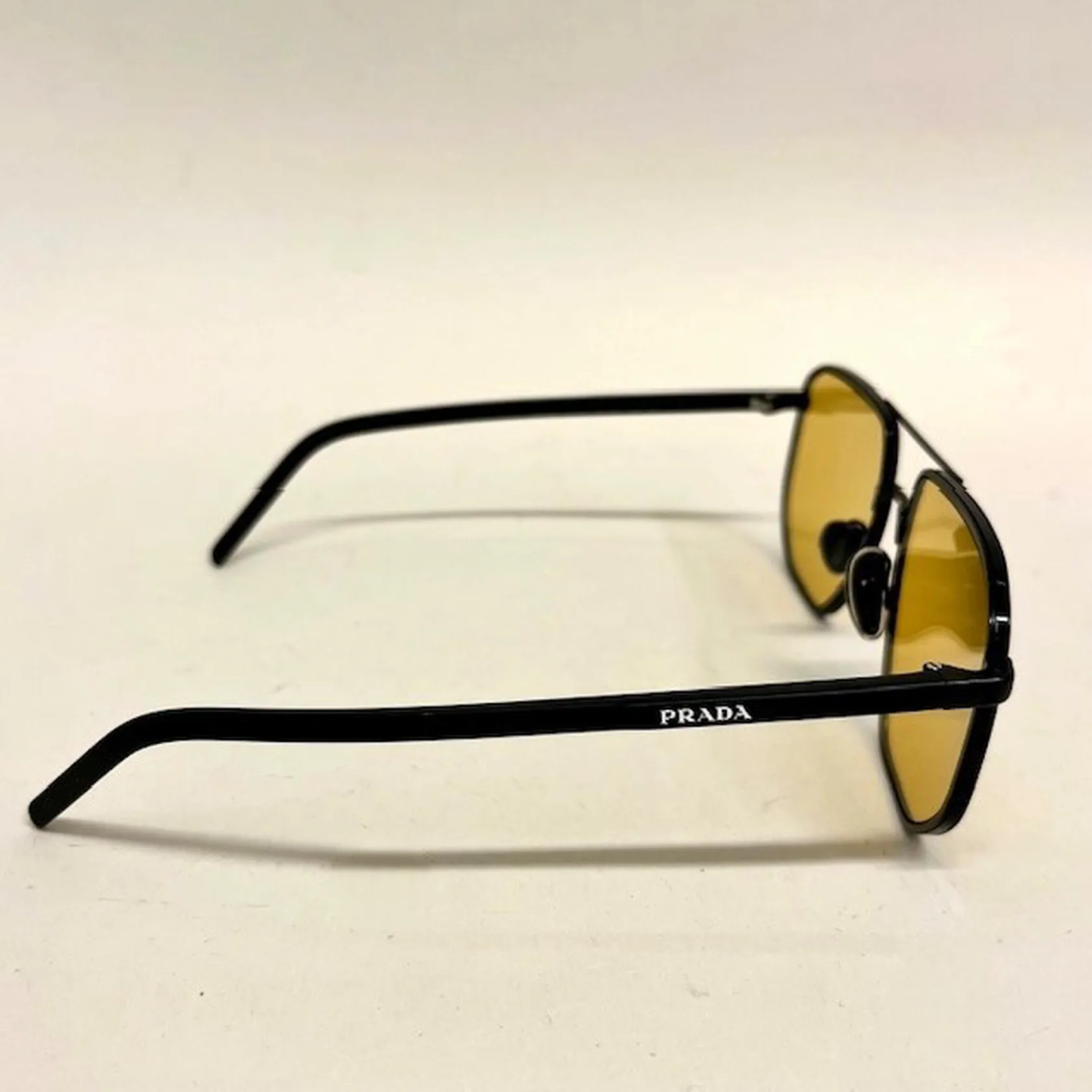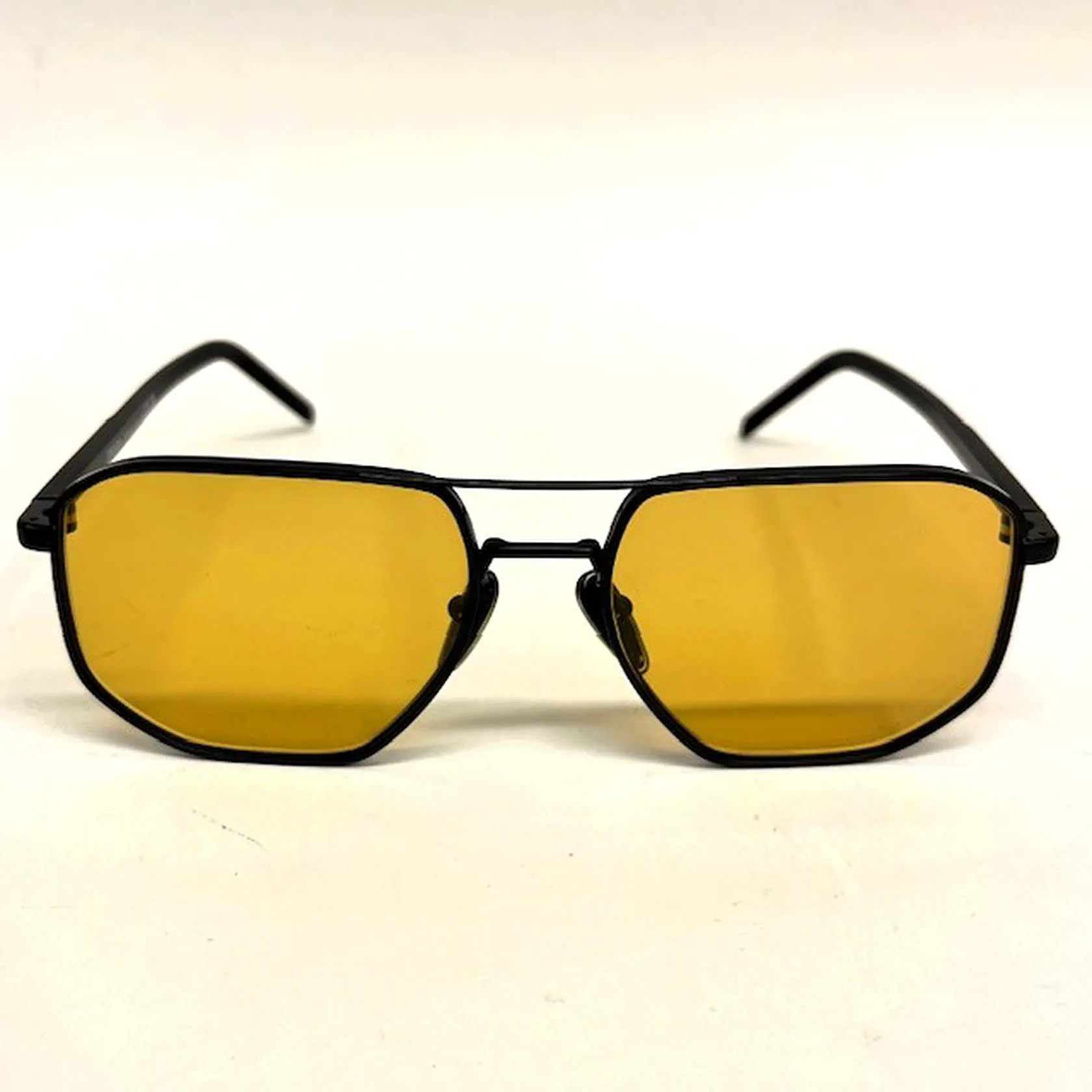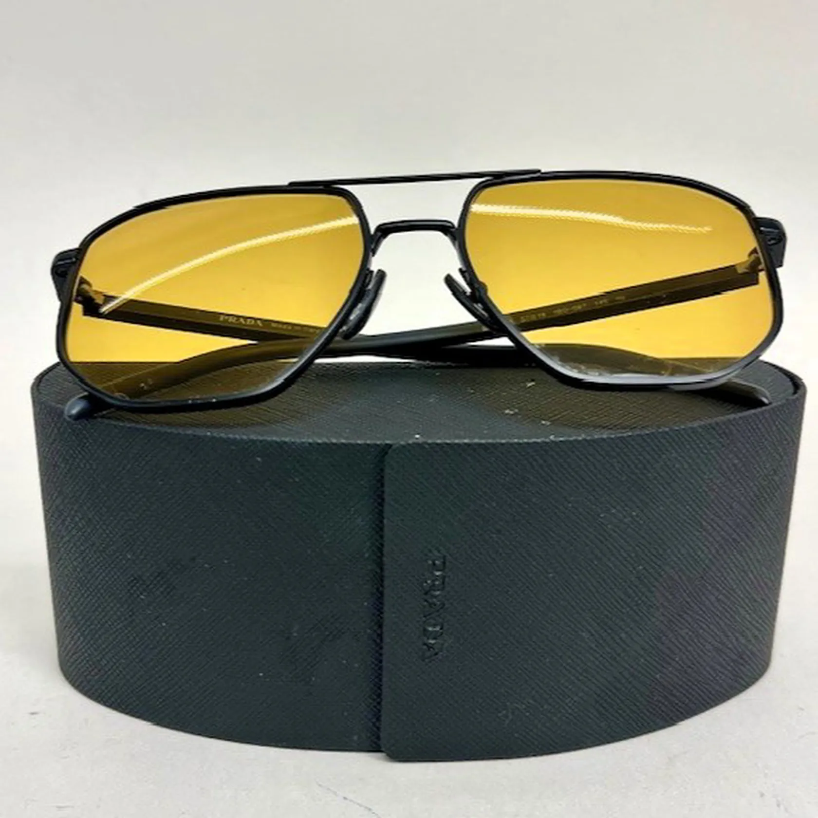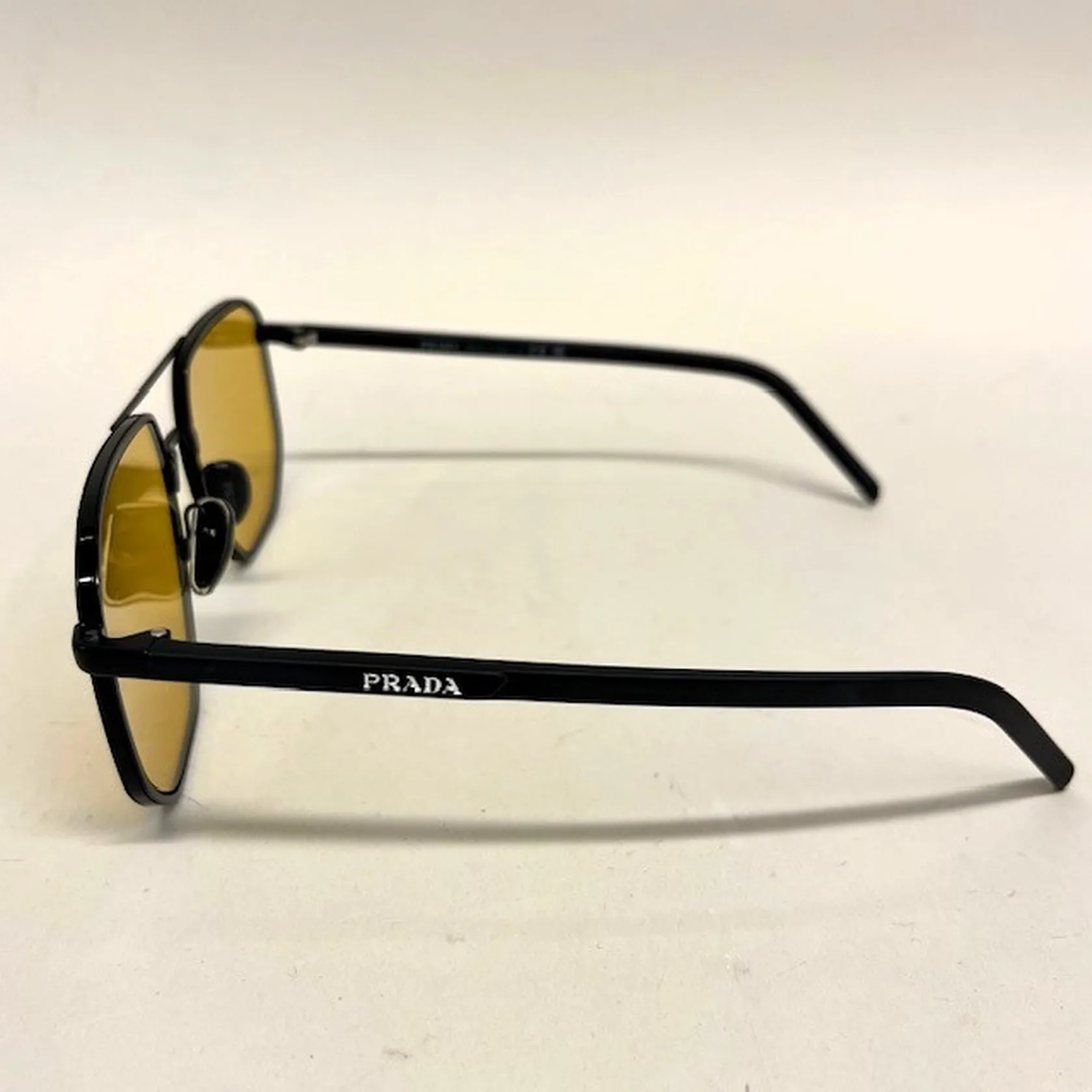 Ett par solglasögon, Prada, pilot, hexagon, modell SPR59Y, 57¤18, 1BO-0B7, svarta metallbågar, gula glas, originaletui, lätt slitage
