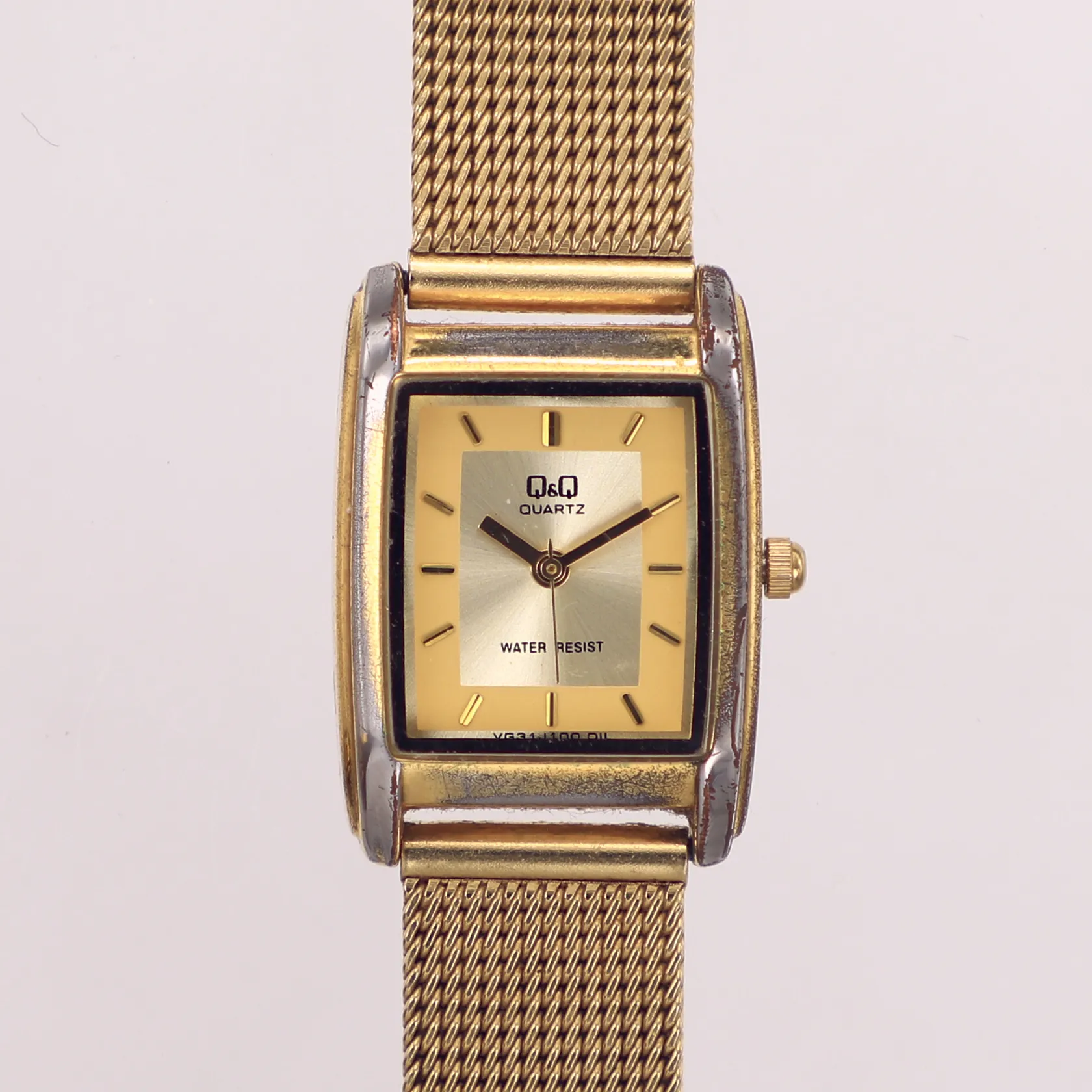 Damur Q&Q, guldfärgat stål, quartz, ca 23x20mm, minimalt nagg på glas, färgbortfall, inga tillbehör