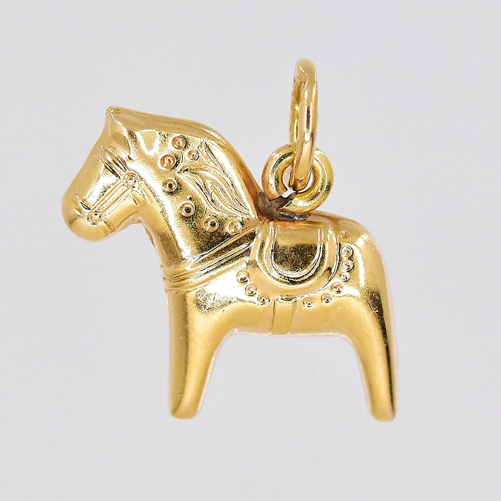 Hänge dalahäst, 15x15mm inklusive ögla, ihålig, öppen ögla, 18K Vikt: 0,8 g.