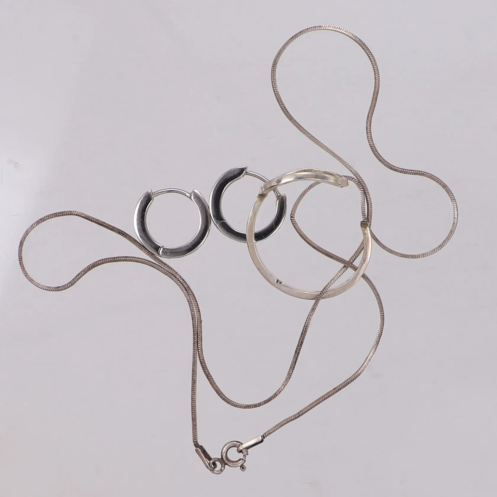 Ett par örhängen med vita stenar, sten saknas, GHA, Ring, defekt, Collier, missfärgat, 925/1000 silver Vikt: 6,8 g.