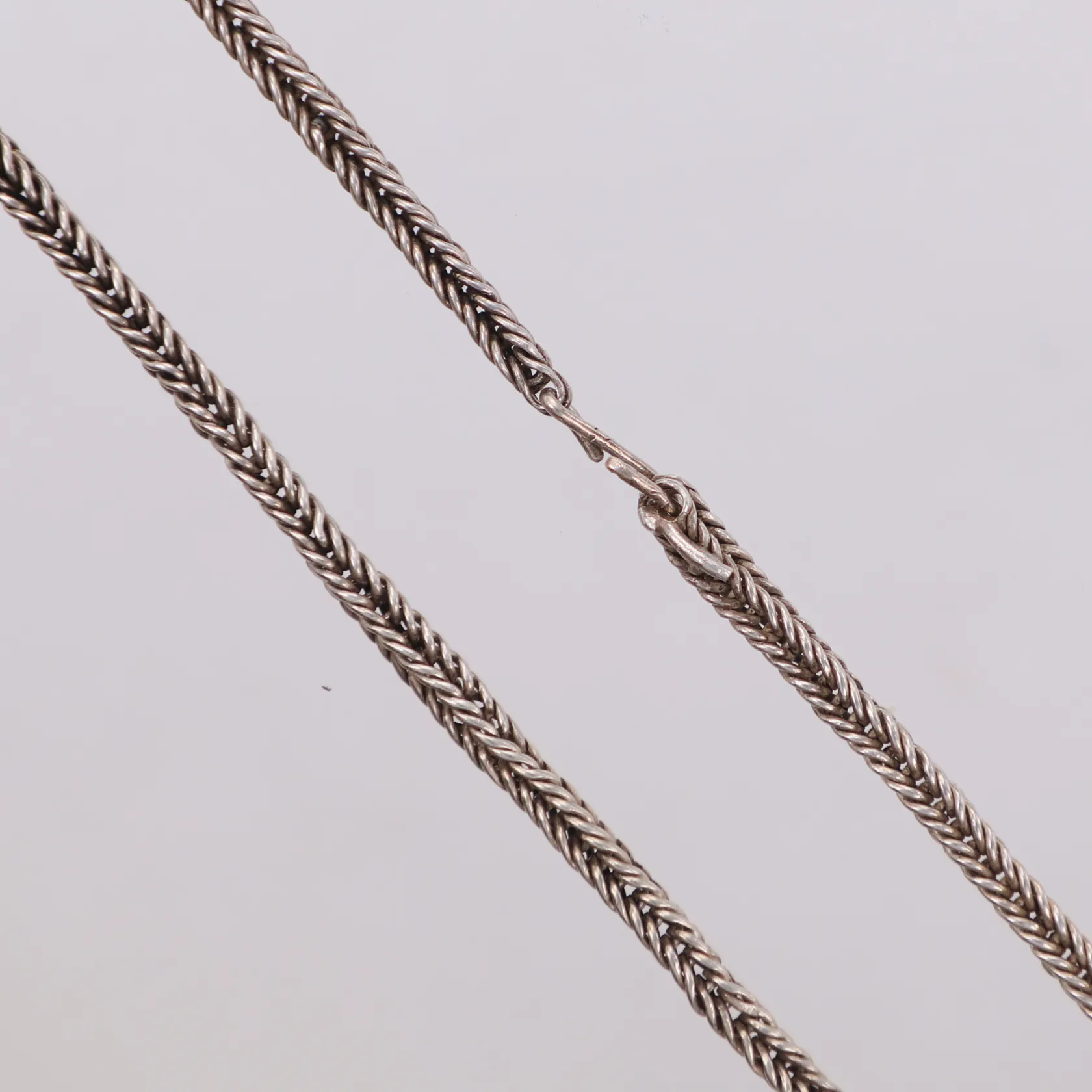 Kedja, längd 53cm, bredd 3,8mm, bucklor, kroklås, ostämplat silver Vikt: 31,9 g.