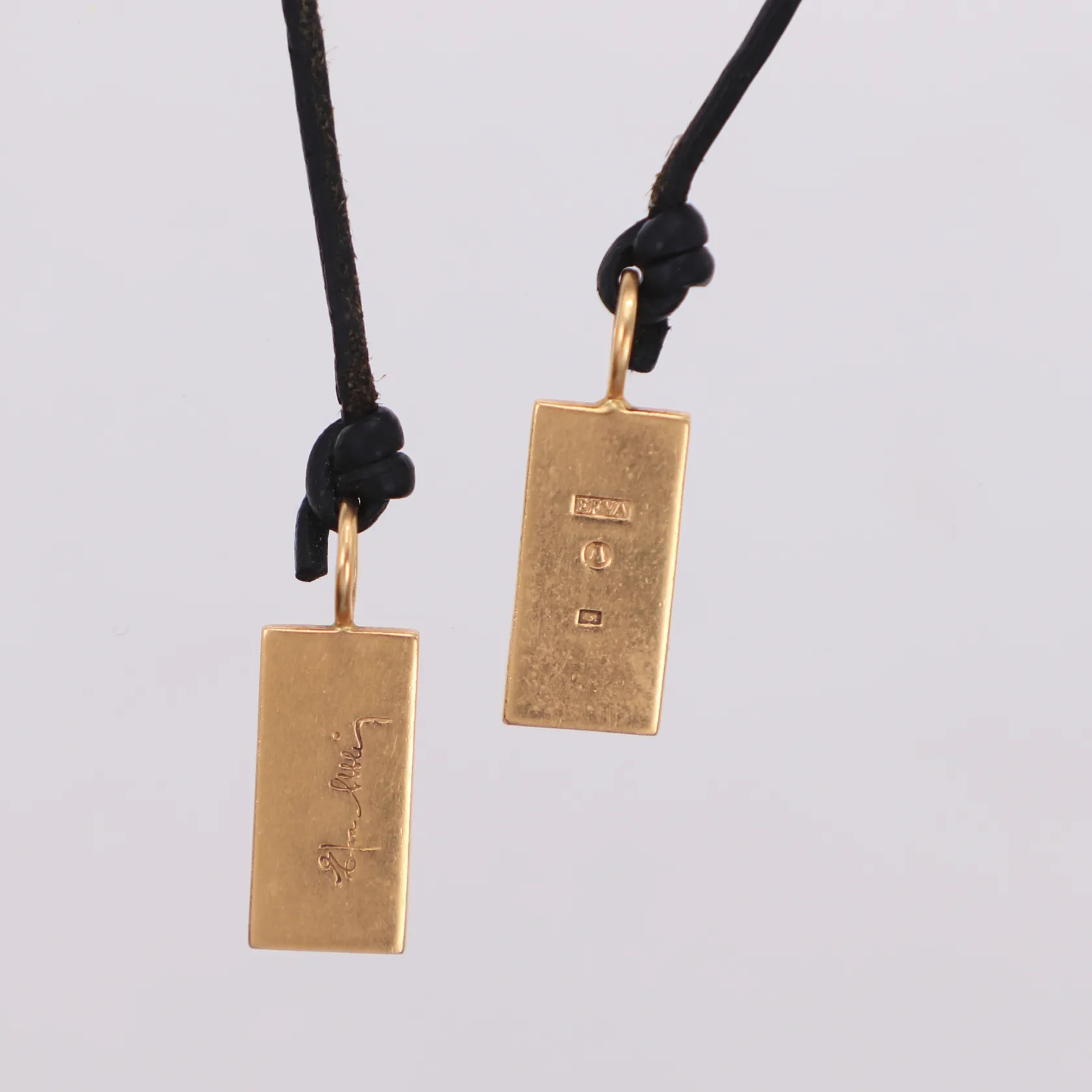 Collier Efva Attling, läderrem med två hängen, längd 72cm, smärre repor, 18K Bruttovikt 11,7g Vikt: 11,7 g.