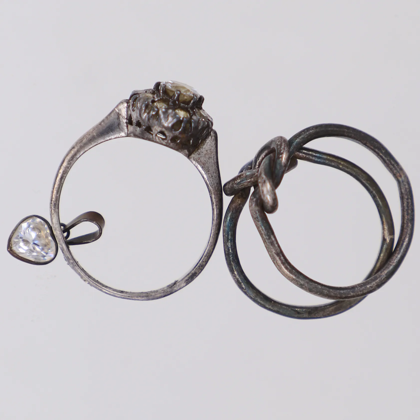 Diverse silver, skevt, stenar, silver Vikt: 7,5 g.