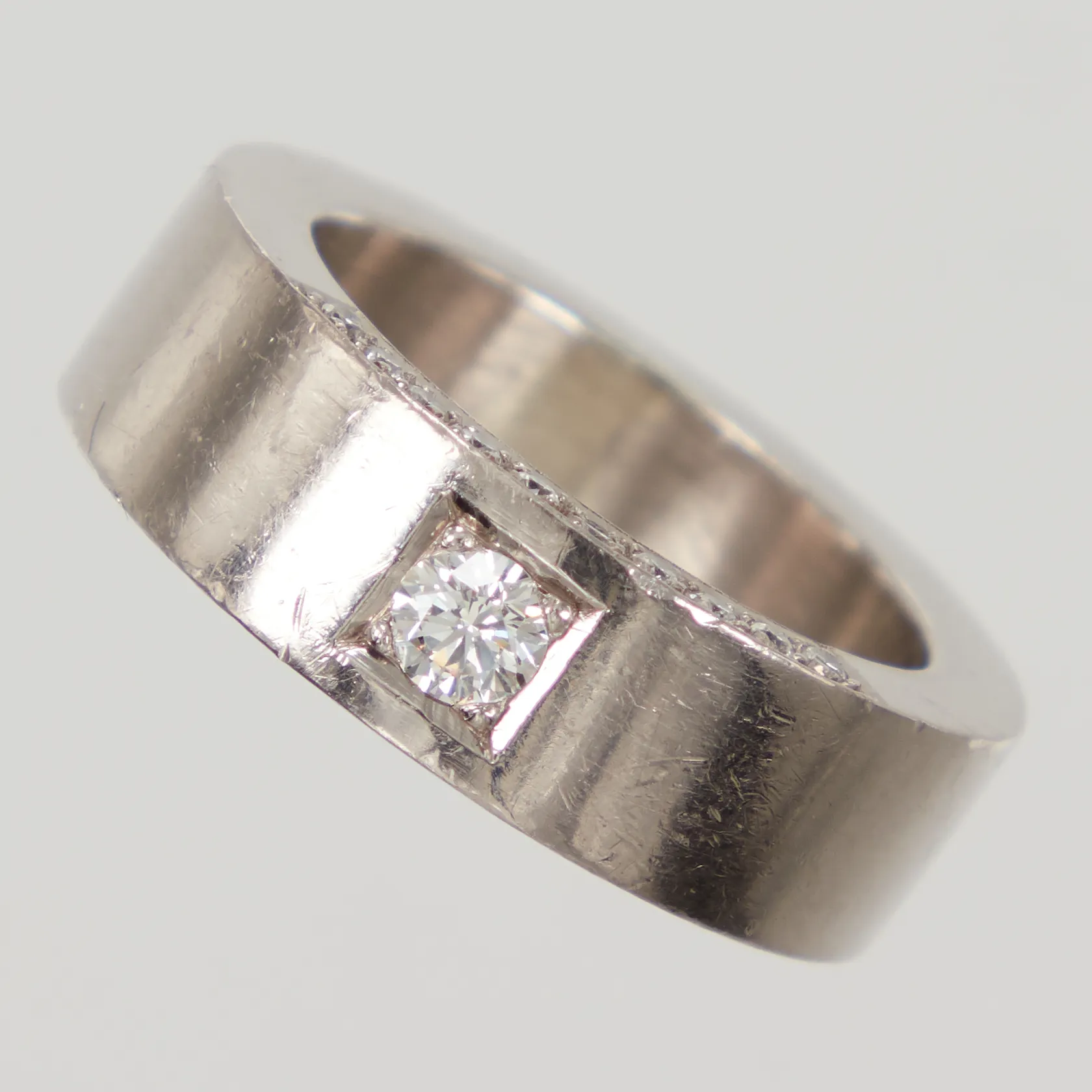 Ring stl 18¼, bredd 7,2mm, briljantslipad diamant 1x ca 0,23ct, 10x ca 0,015ct, smärre repor, vitguld, 18K, Vikt: 22,6 g.