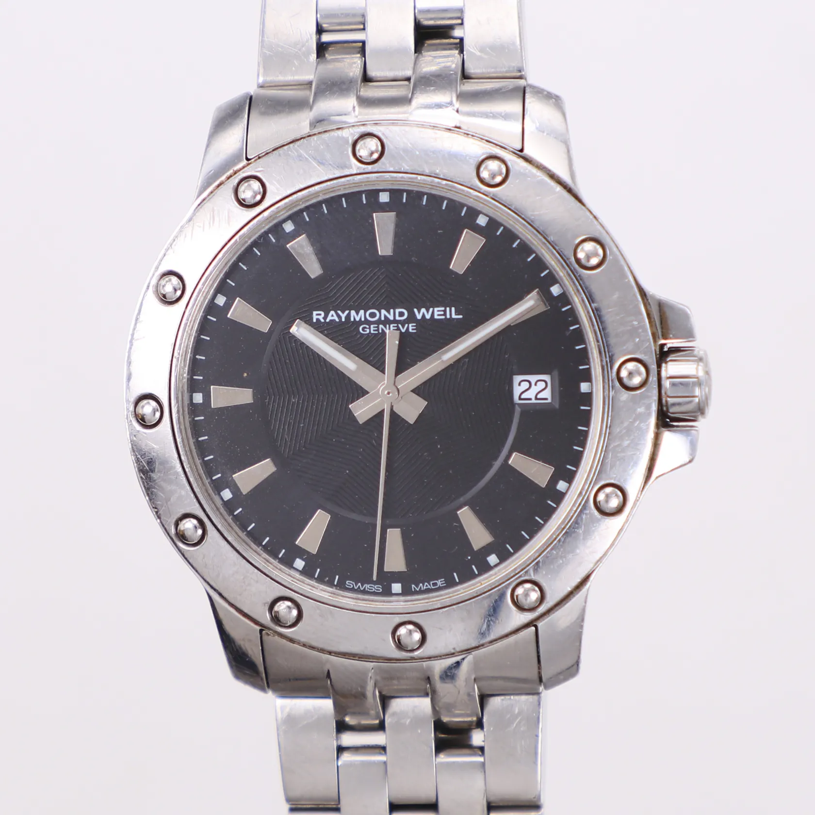 Herrur Raymond Weil Geneve, Ø38,8mm, stål, ref 5599, ser.nr V006833, quartz, år 2013, viklås, repor, extra länkbitar, manual, servicekvitto 13-09-09, box, ytterkartong