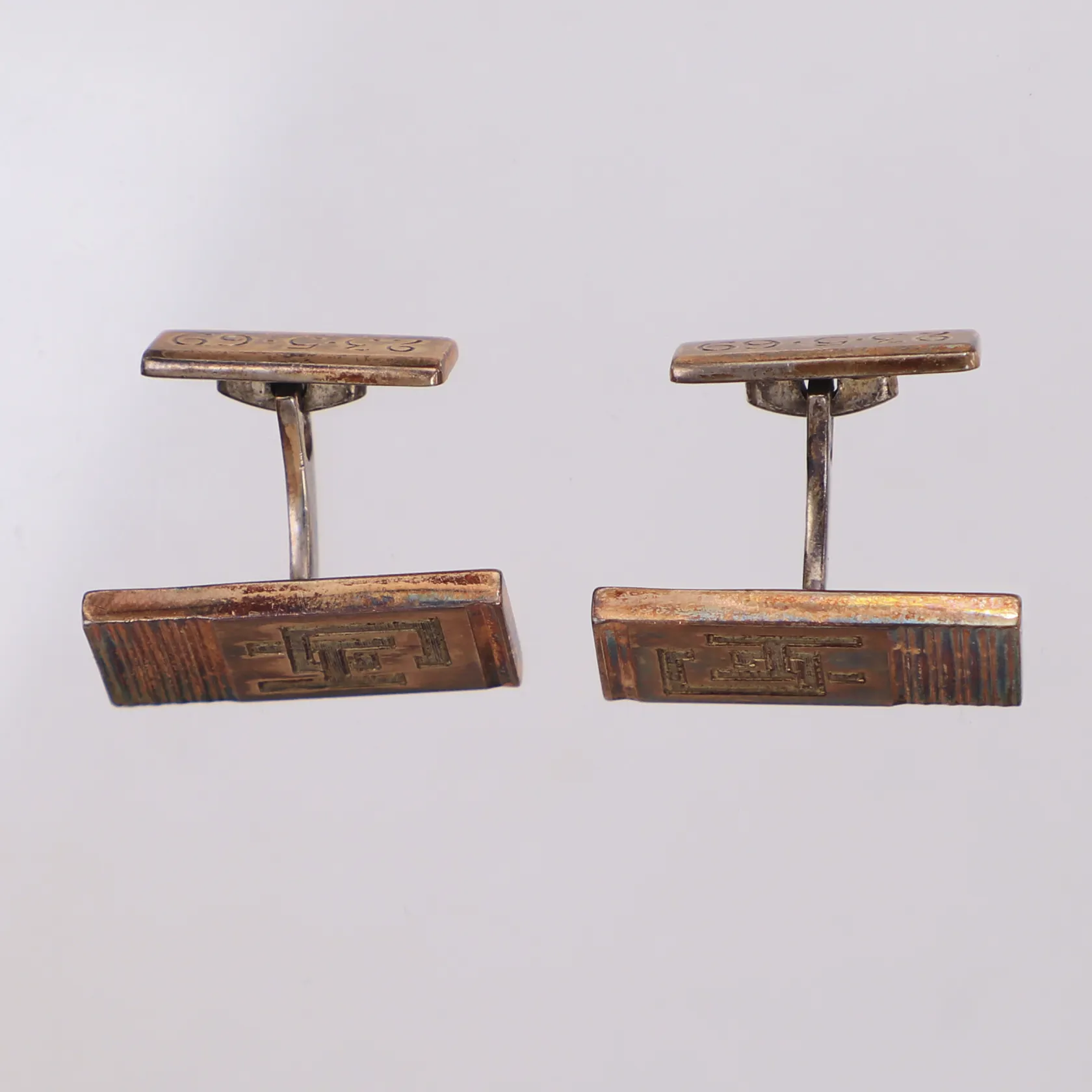 Ett par manschettknappar, 24x10mm, monogram, gravyr, 830/1000 silver Vikt: 17,2 g.
