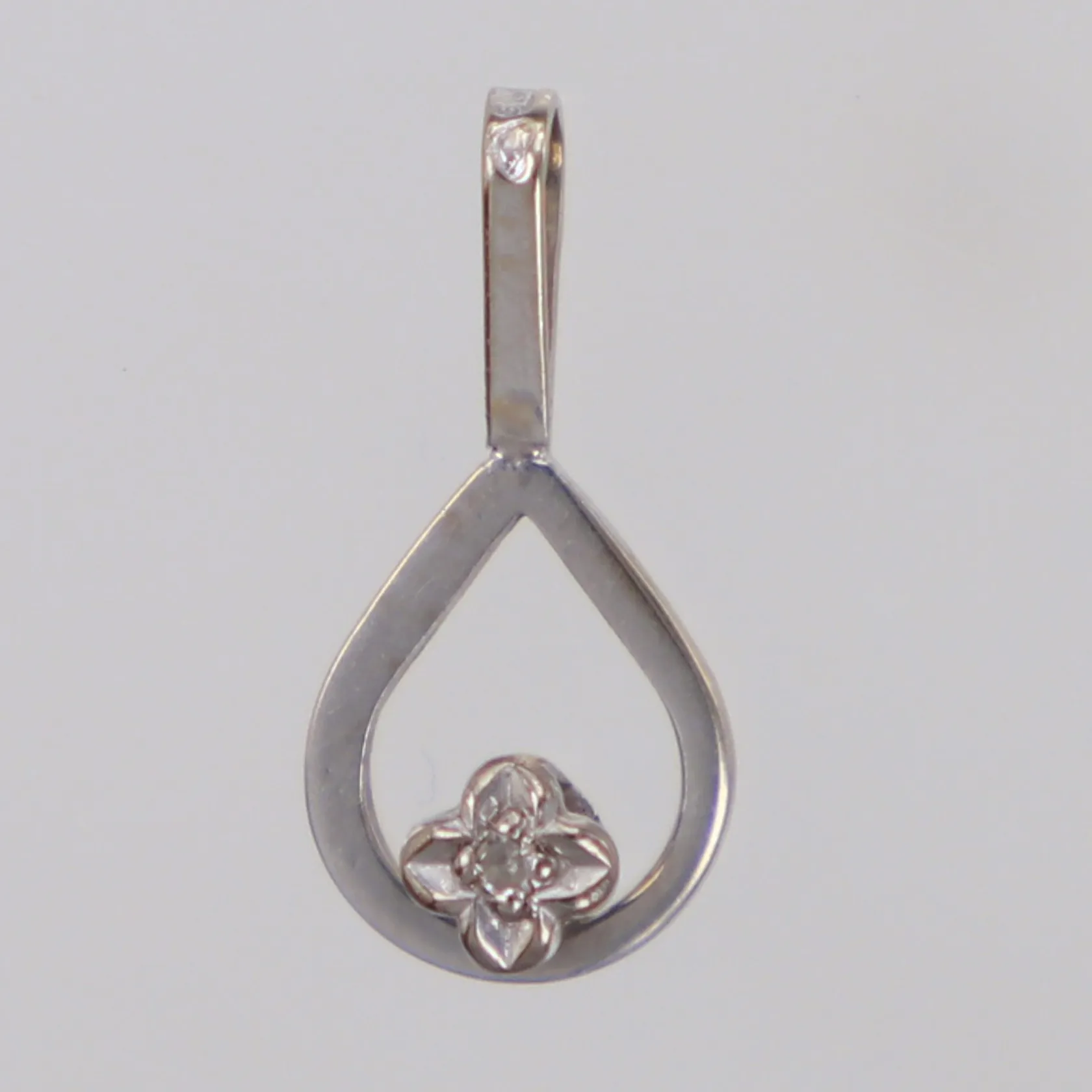 Hänge med diamant 1xca0,01ct åttkantslipad, längd 16mm, bredd 8mm, vitguld, 18K Vikt: 0,5 g.