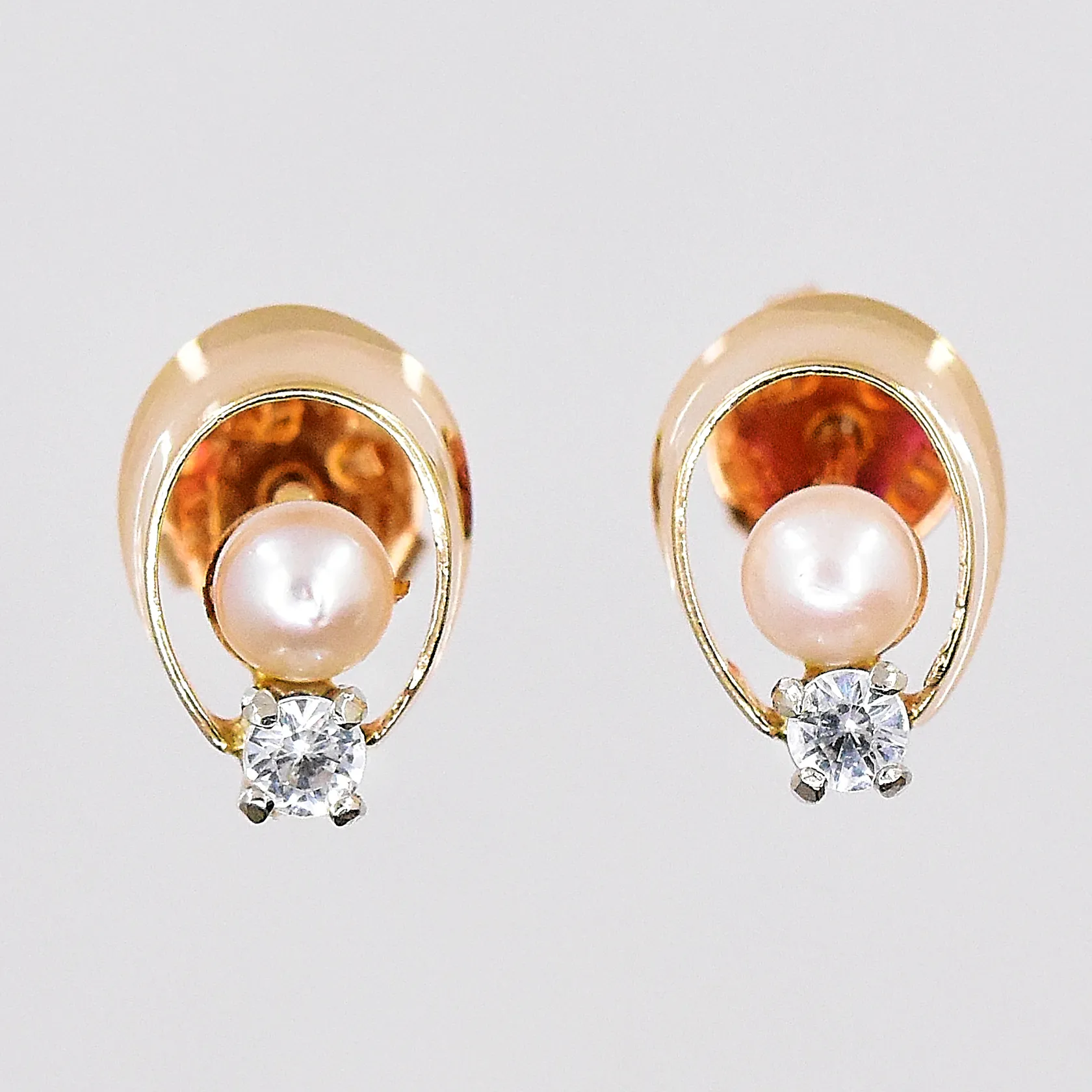 Ett par örhängen, ca 7x10mm, vit sten, 18K Vikt: 1,8 g.