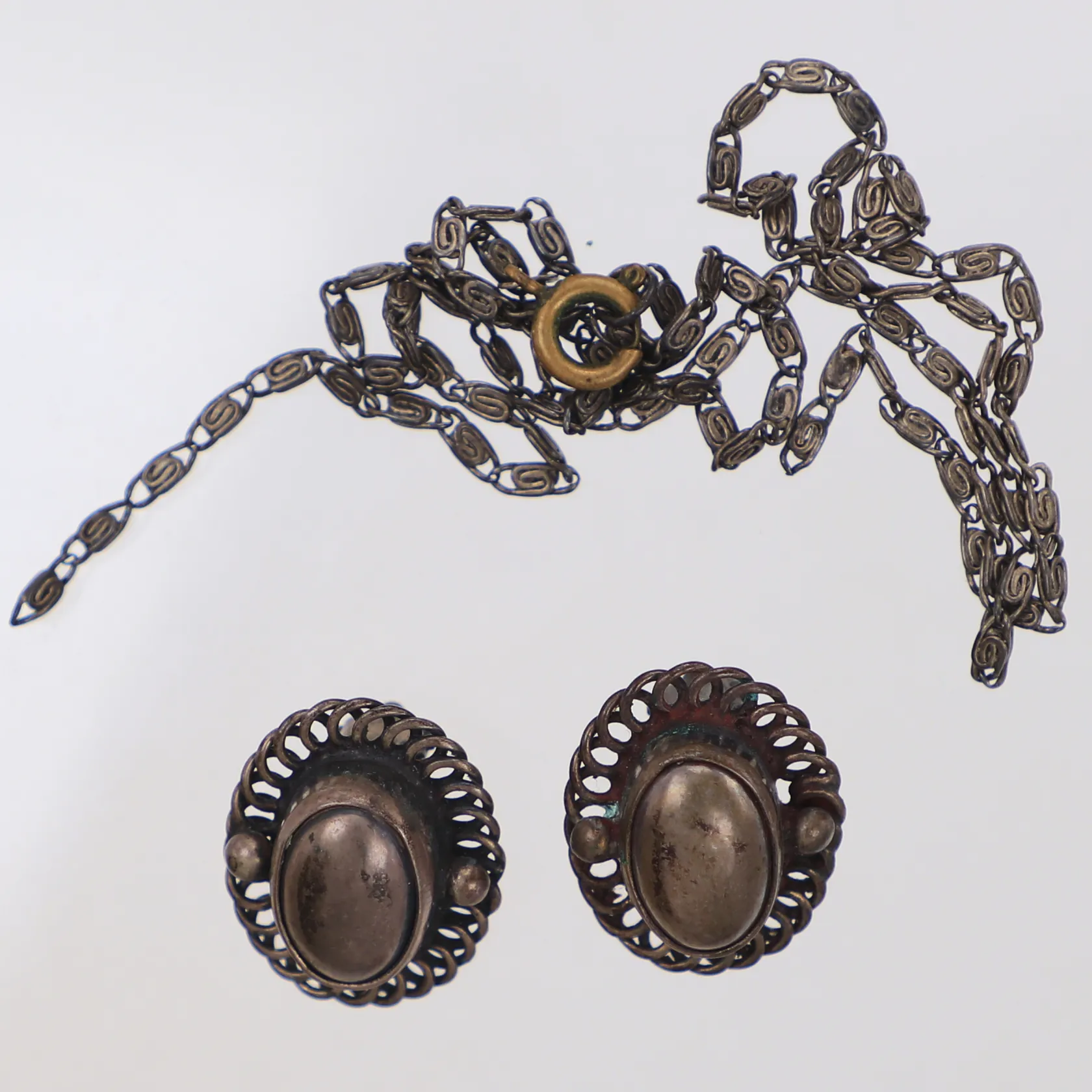 Örhängen med clips, kedja trasig, silver 830/100 Vikt: 12,6 g.