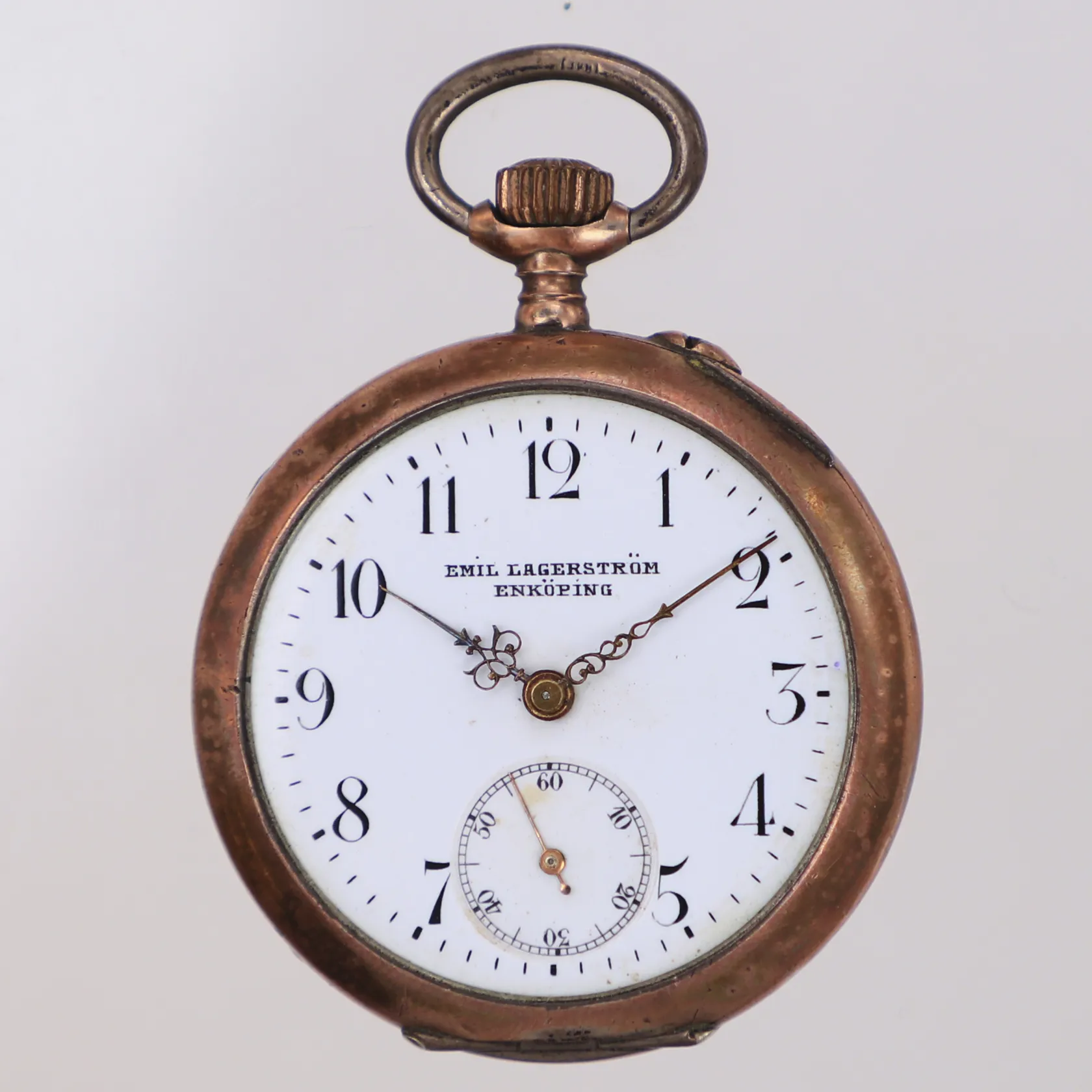 Mormorsur, Emil Lagerström Enköping, manuell (går ej), 36mm, boettnr 13551, saknar glas, bakboett lös, två boetter i silver 800/1000