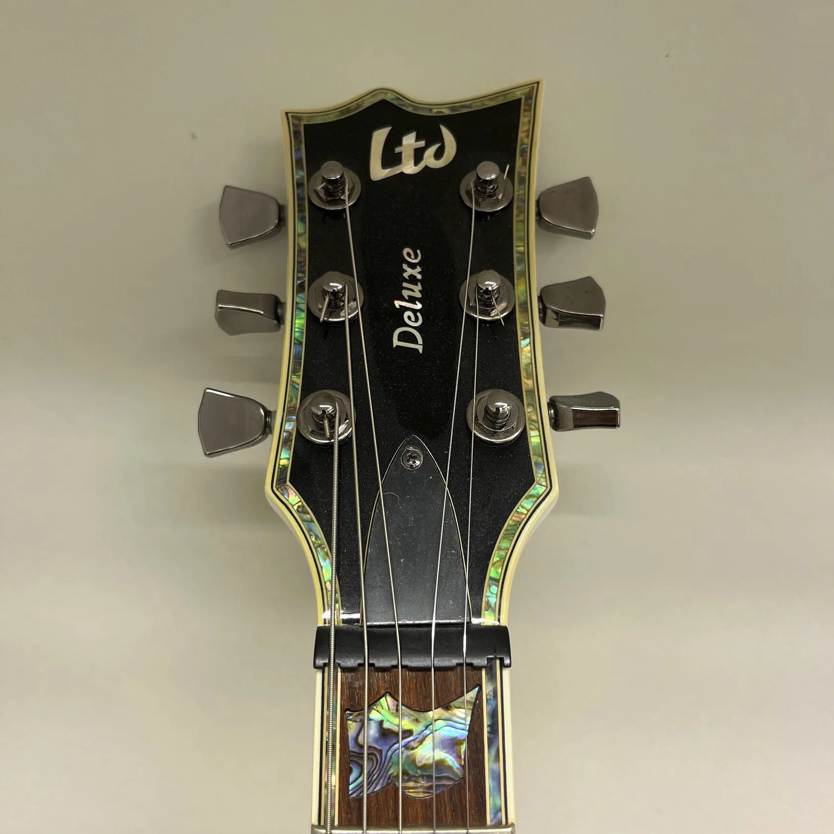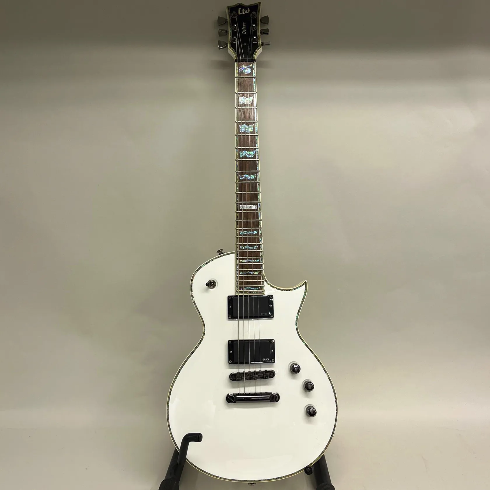 Elgitarr, LTD Deluxe, Korea, EC-1000, snr: R0815606, en sträng saknas, sladdar, axelrem, mjukt Fender-fodral Skickas med Bussgods eller PostNord.