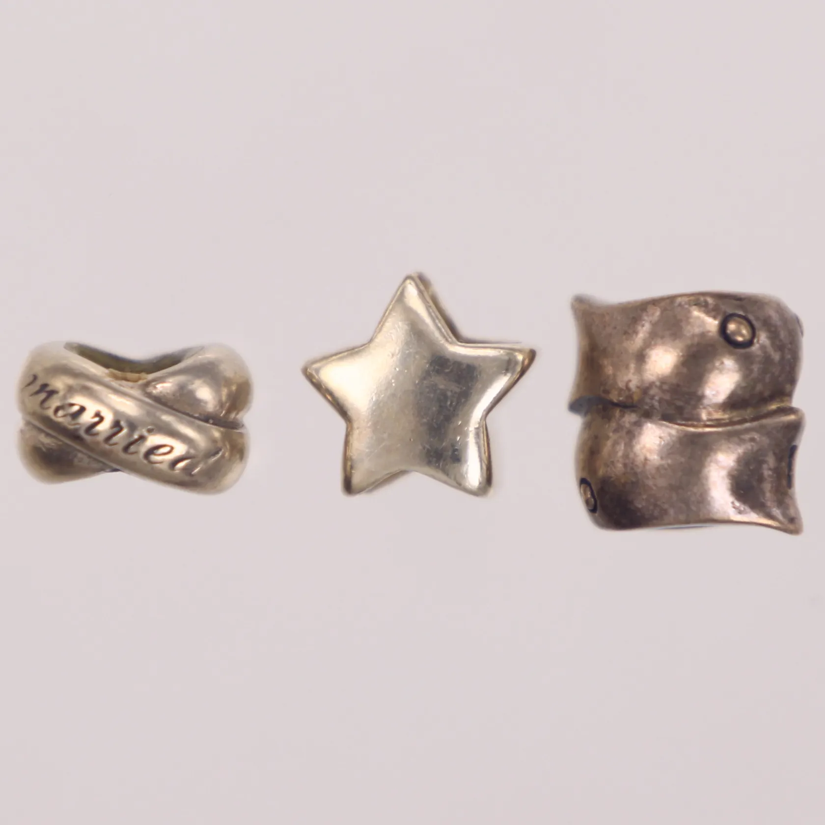 3 Berlocker, 925/1000 silver. Vikt: 6,5 g.