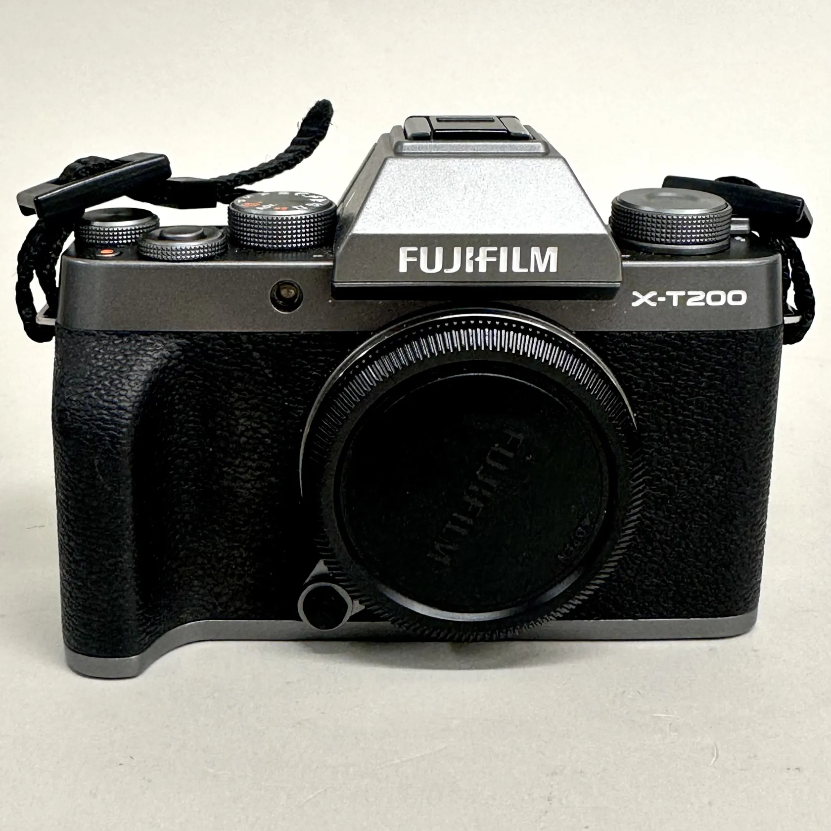 Digitalkamera, Fujifilm X-T200, serienr OTL07703, dark silver, med objektiv Fujifilm Fujinon Aspherical Lens Super EBC XC 15-45mm, 1:3.5-5.6 OIS PZ 52, serienr OACO4168, flera kamerafilter, kablage, manual, originalkartong, blixtfunktionen fungerar ej Skickas med postpaket.