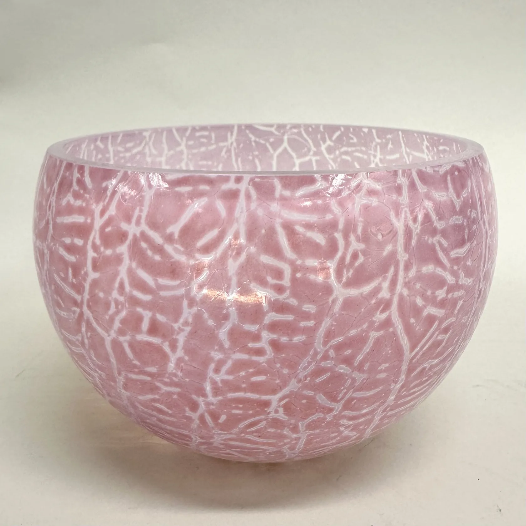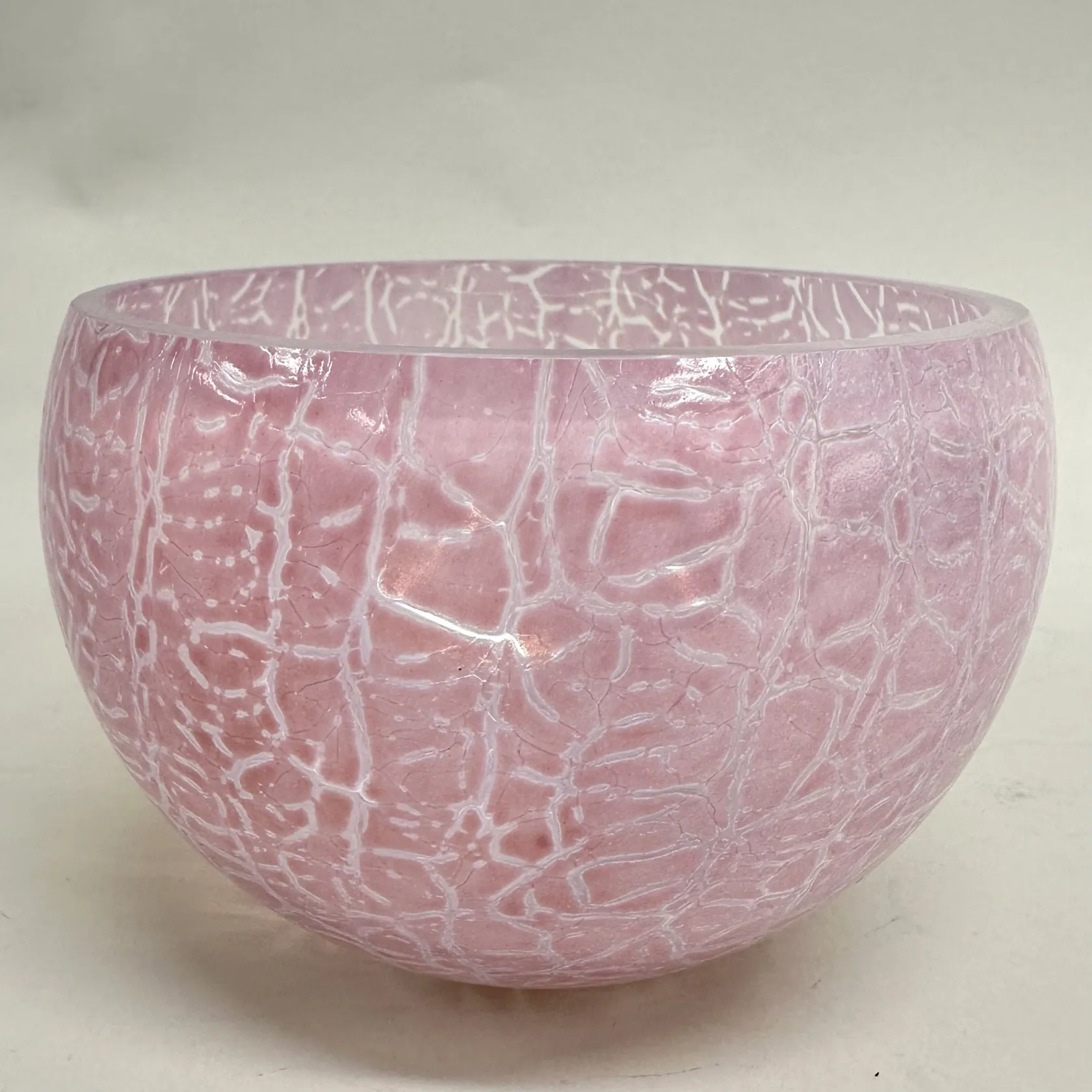 Skål, höjd 12cm, Ø16,5cm, nr 58806, signerad Ulrika Hydman Vallien (1938-2018), Kosta Boda, spräcklig dekor i rosa ton, glas, originalkartong