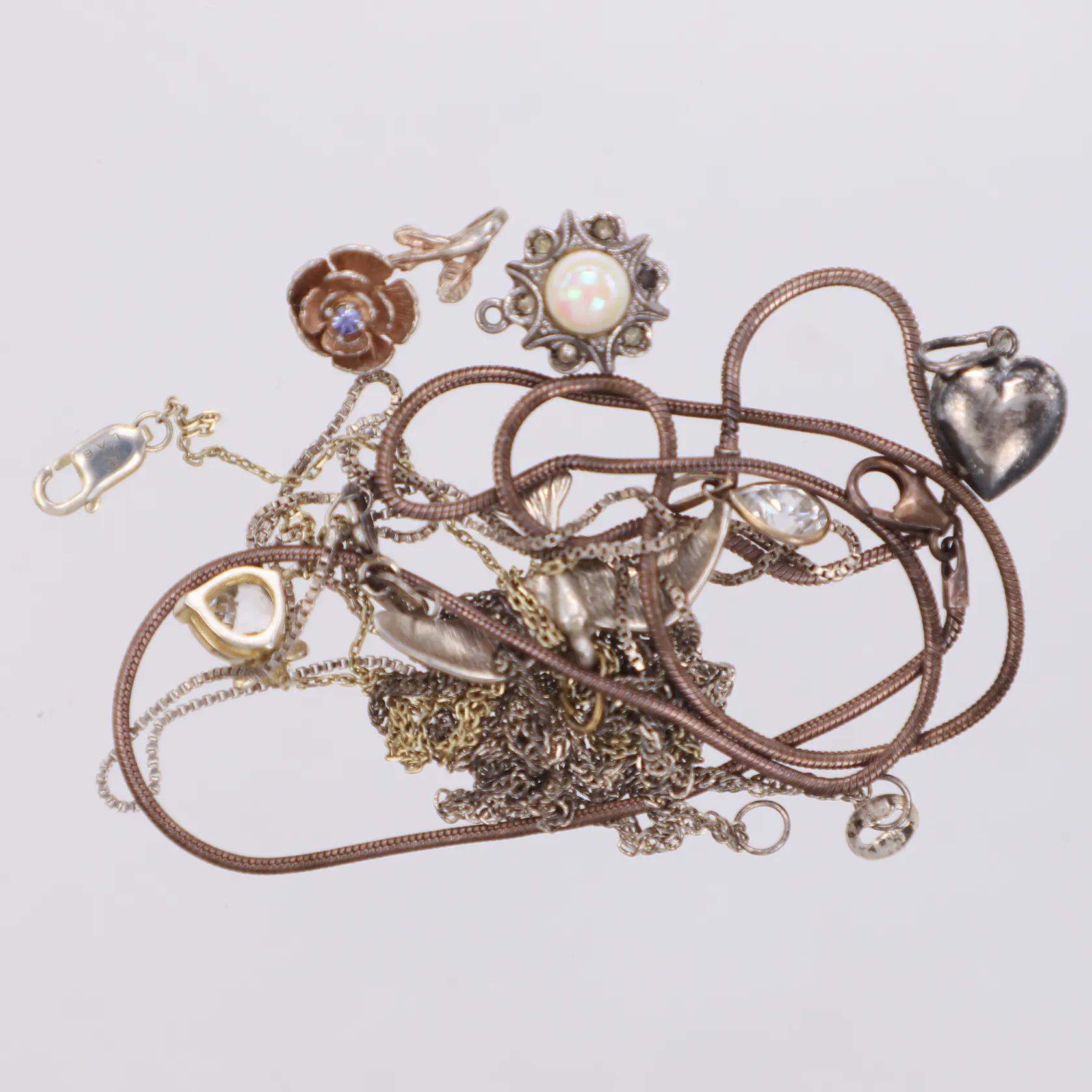 Diverse silversmycken, hängen, kedjor, defekter, silver Vikt: 16,1 g.