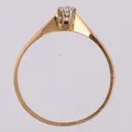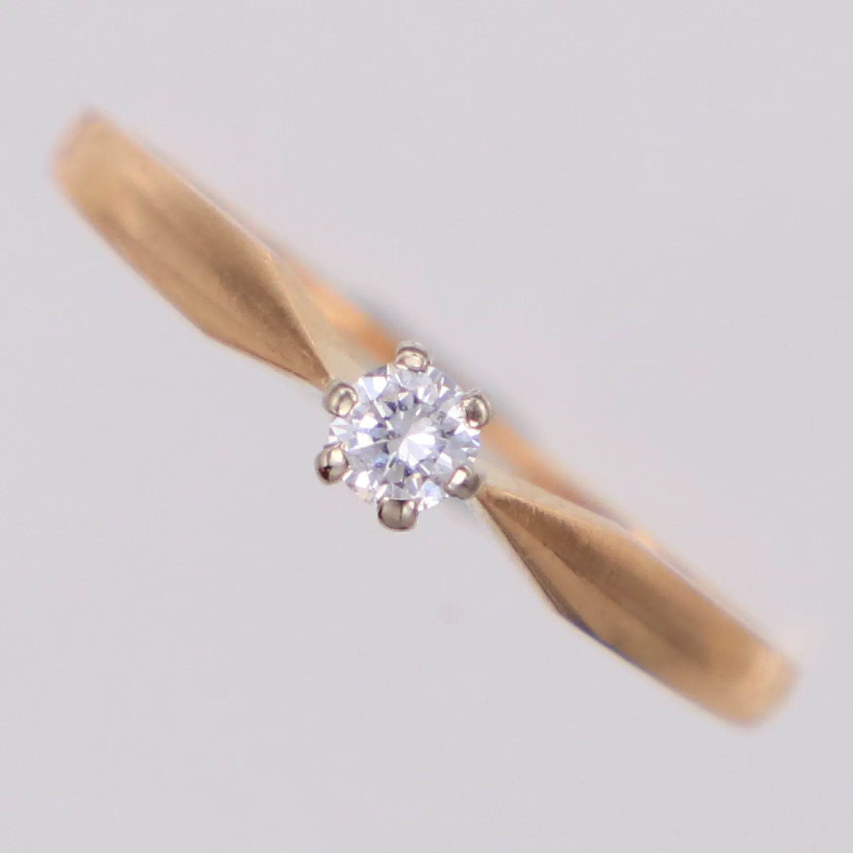 Ring med diamant 1xca0,10ct, spricka i fattningen, stl 17, bredd 1,0-3,4mm, 18K Vikt: 1,4 g.
