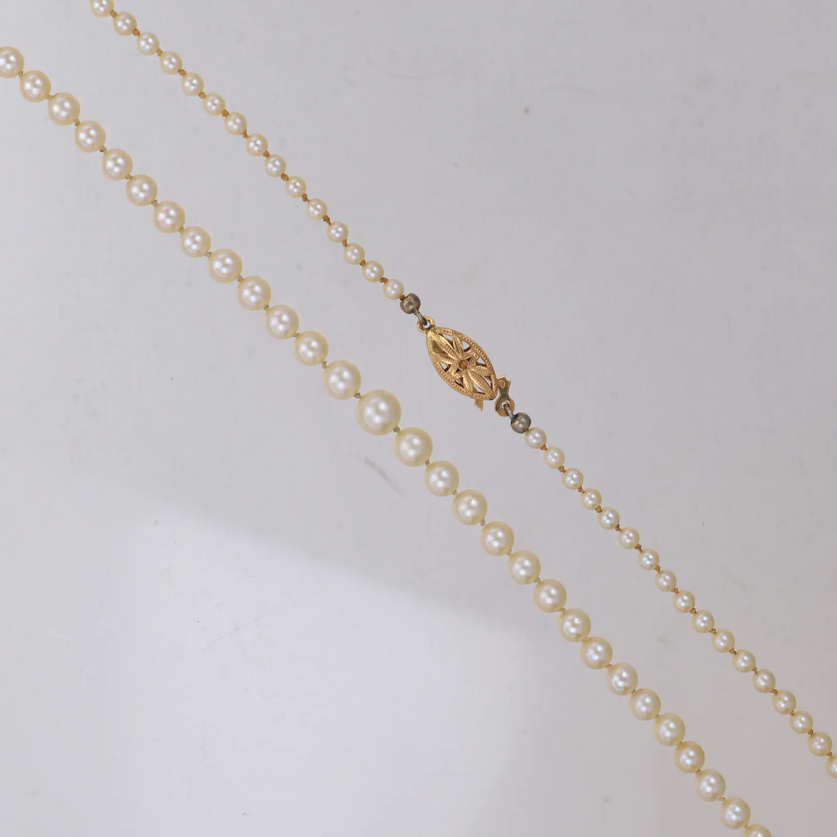 Collier med odlade saltvattenspärlor, längd 54cm, doserat 3,1-6,7mm, lås 18K