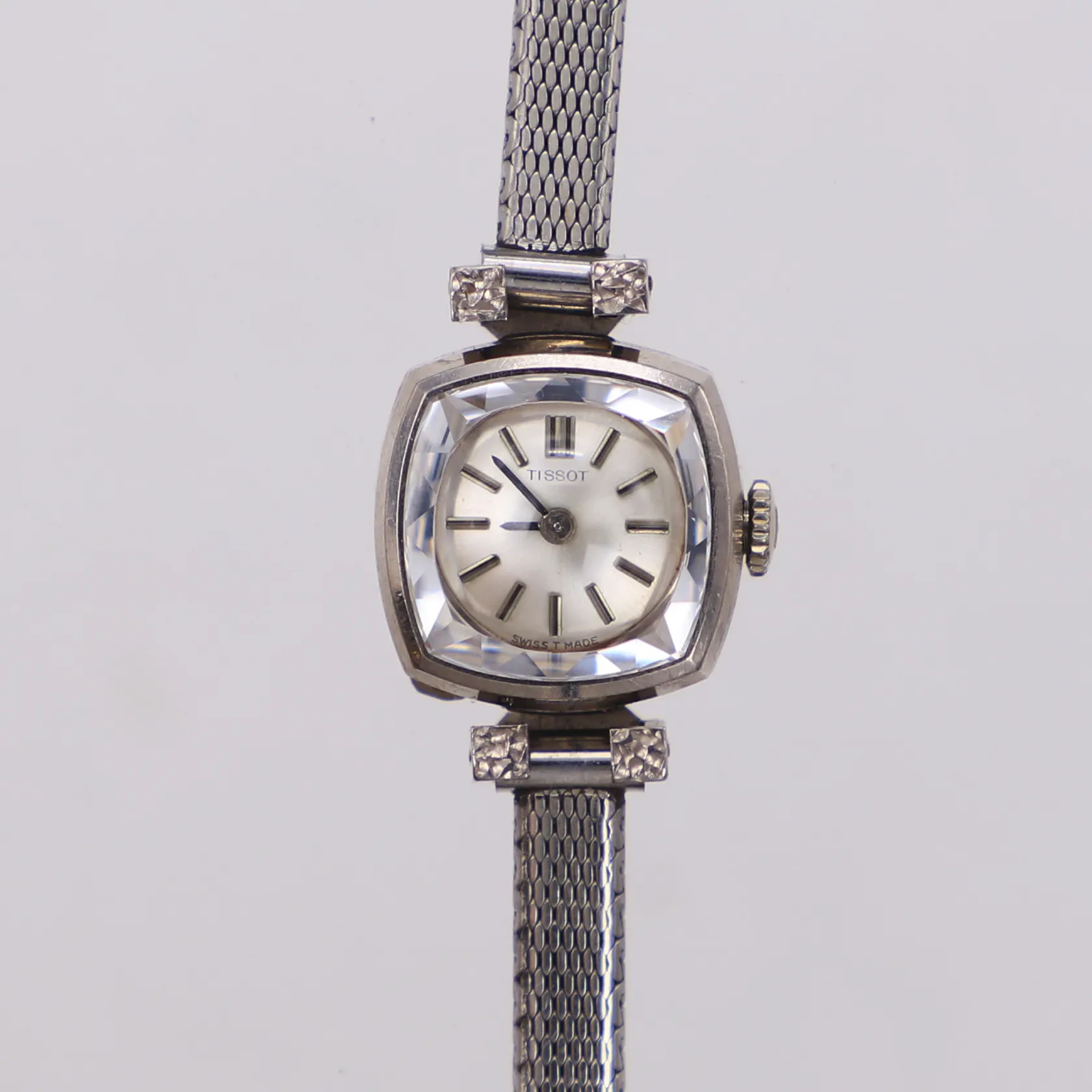 Damur, Tissot, manuell, Ø18,7mm, vitguld 18K, med länk i stål, längd 17cm. Bruttovikt inklusive länken 18,9g